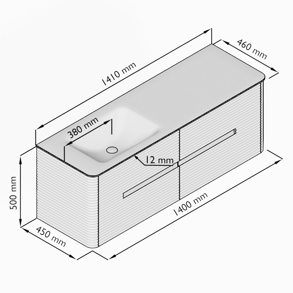 Mondiaz CIRO-DLUX Meuble de salle de bains ensemble - 140x45x50cm - Plan-vasque solid surface Arena - 1 bassin à gauche - 1 trou de robinet - 4 tiroirs - Dusk