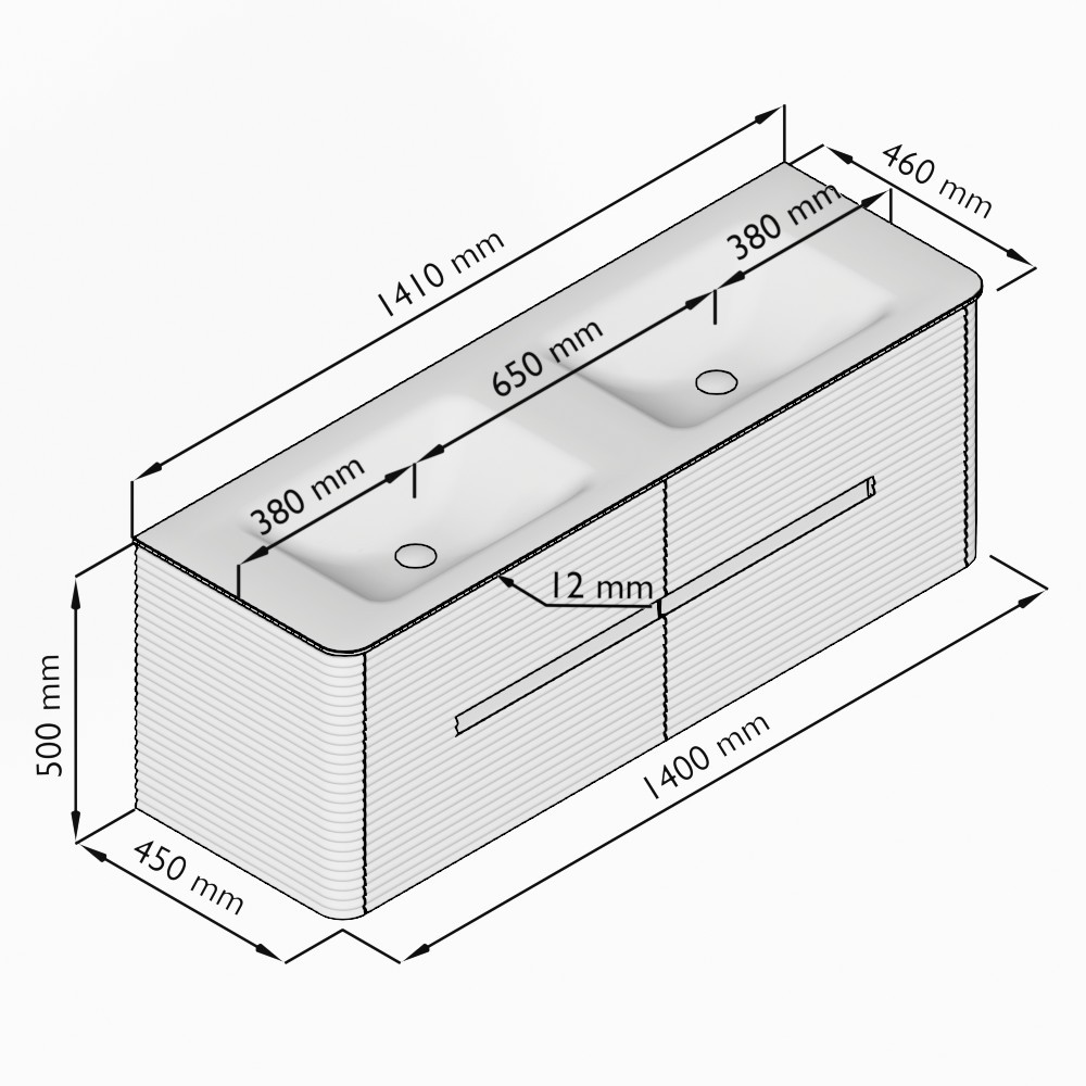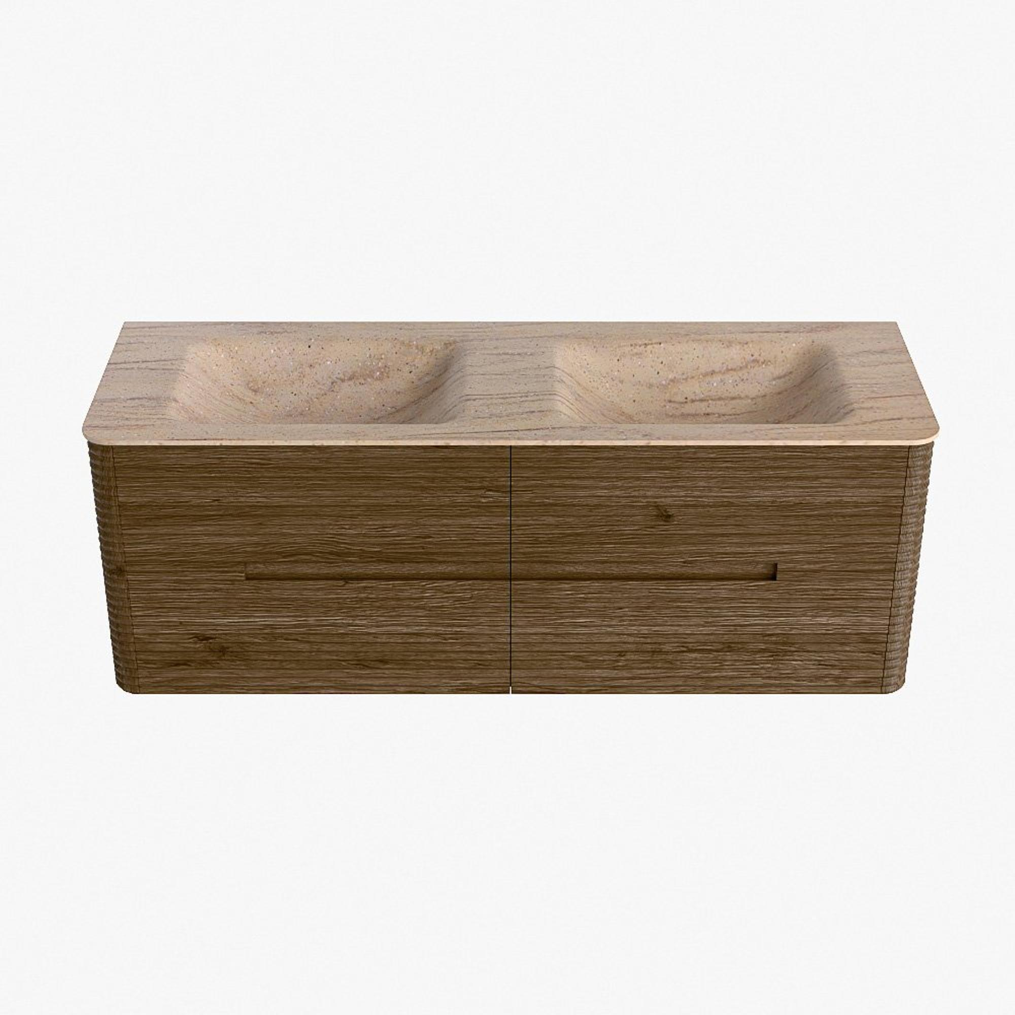 Mondiaz CIRO-DLUX Ensemble de meubles de salle de bains - 140x45x50cm - Plan vasque solid surface Saba - 2 bassins Double - 2 trous de robinetterie - 4 tiroirs - Dusk