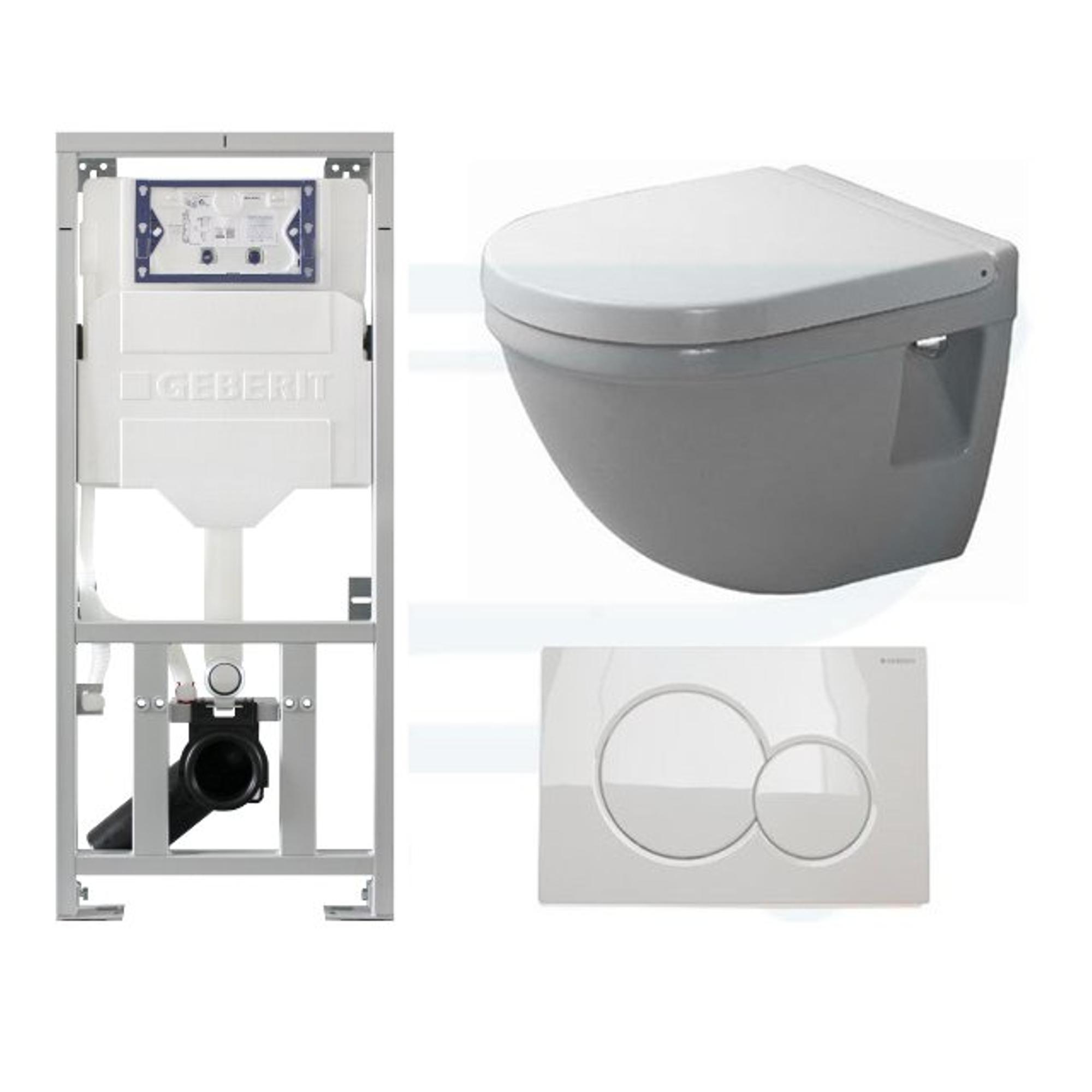 Duravit Starck 3 toiletset - Burda Geberit UP320 inbouwreservoir - compact toilet - geberit toiletzitting - sigma01 bedieningsplaat - glans wit