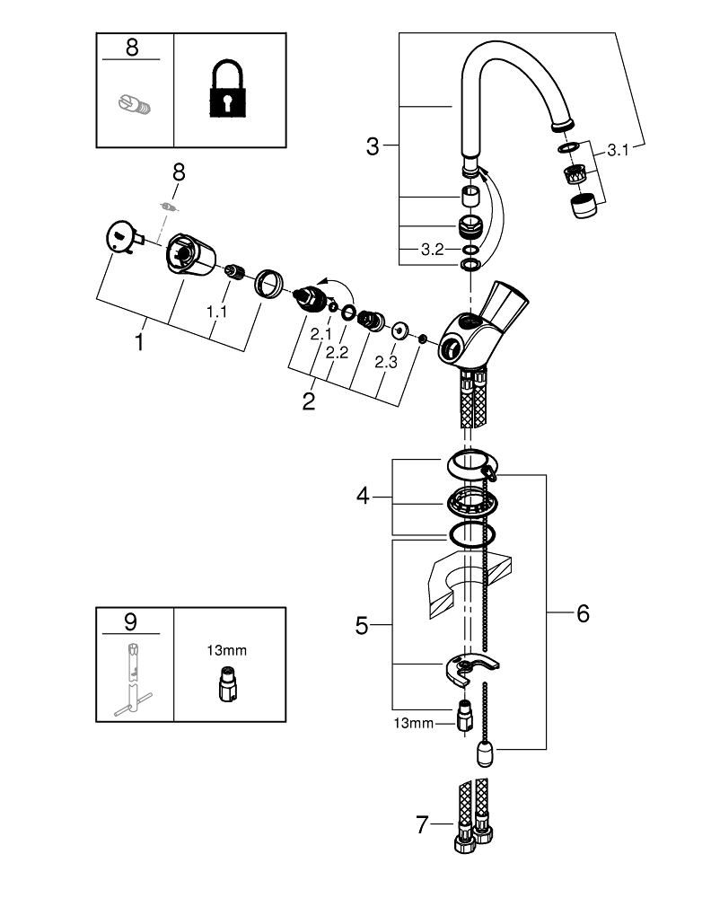 - Hoogwaardige chromen afwerking met krasbestendige GROHE Long-Life Finish
