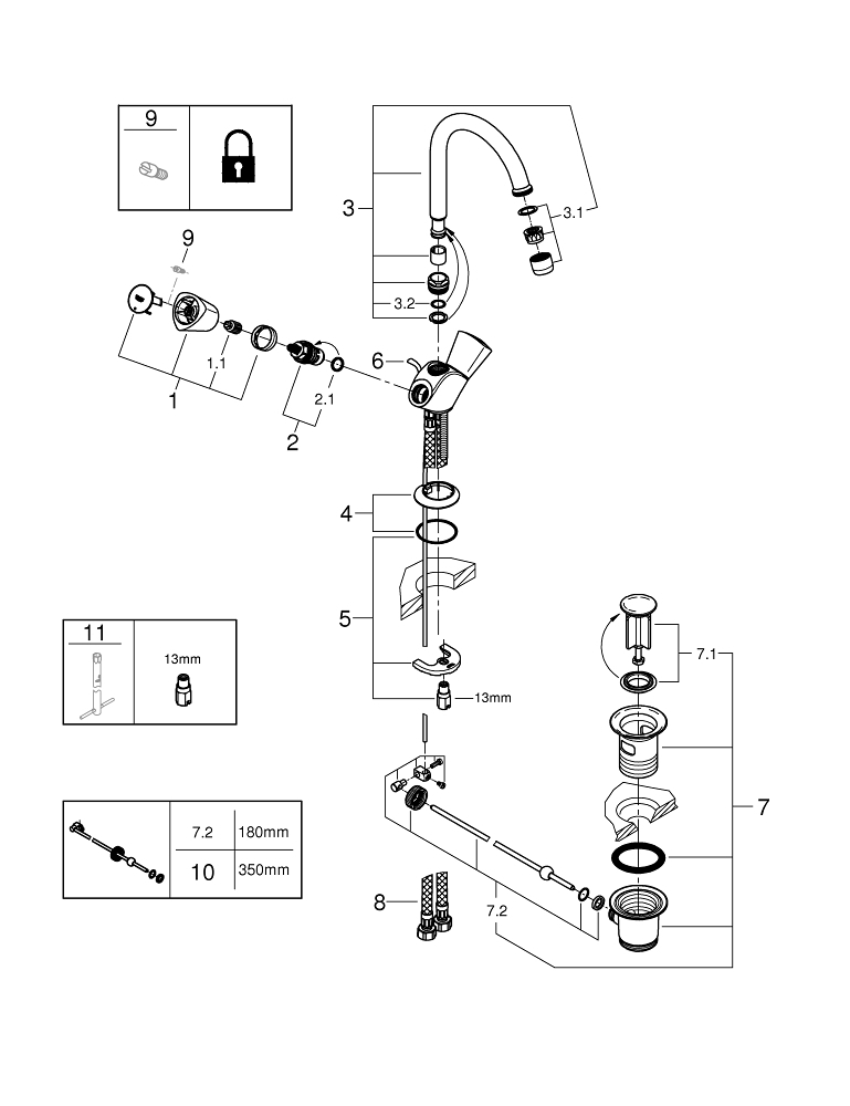 - Draaibare buisuitloop met mousseur voor optimaal watercomfort