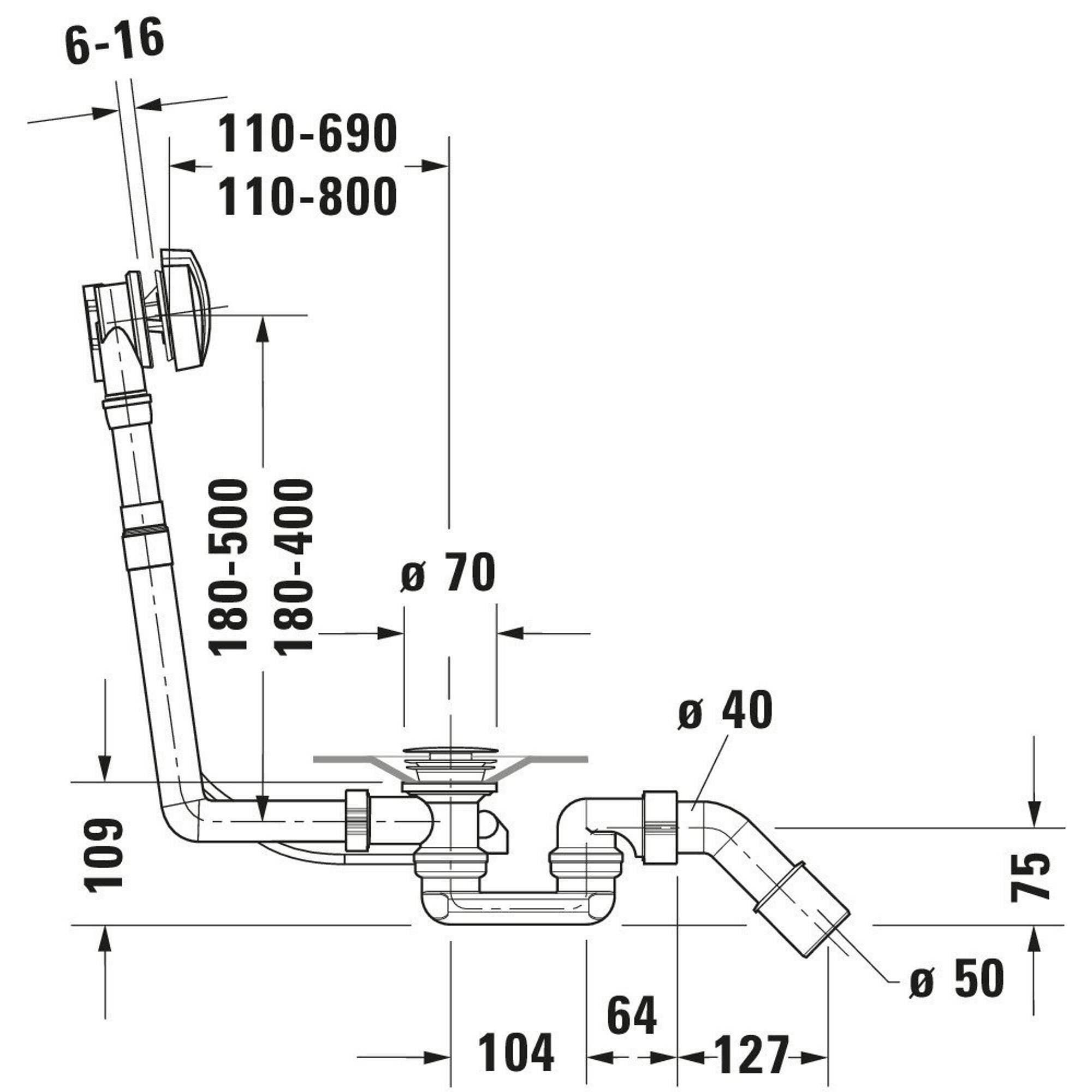 Duravit D-Code badaf- overloopgarnituur verlengde bodemkabel chroom