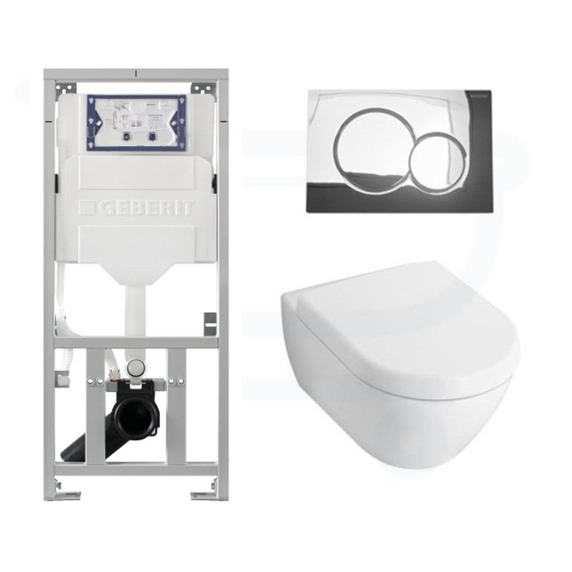 Villeroy & Boch Subway 2.0 Inbouwset met wandcloset wit softclose zitting afdekplaat chroom