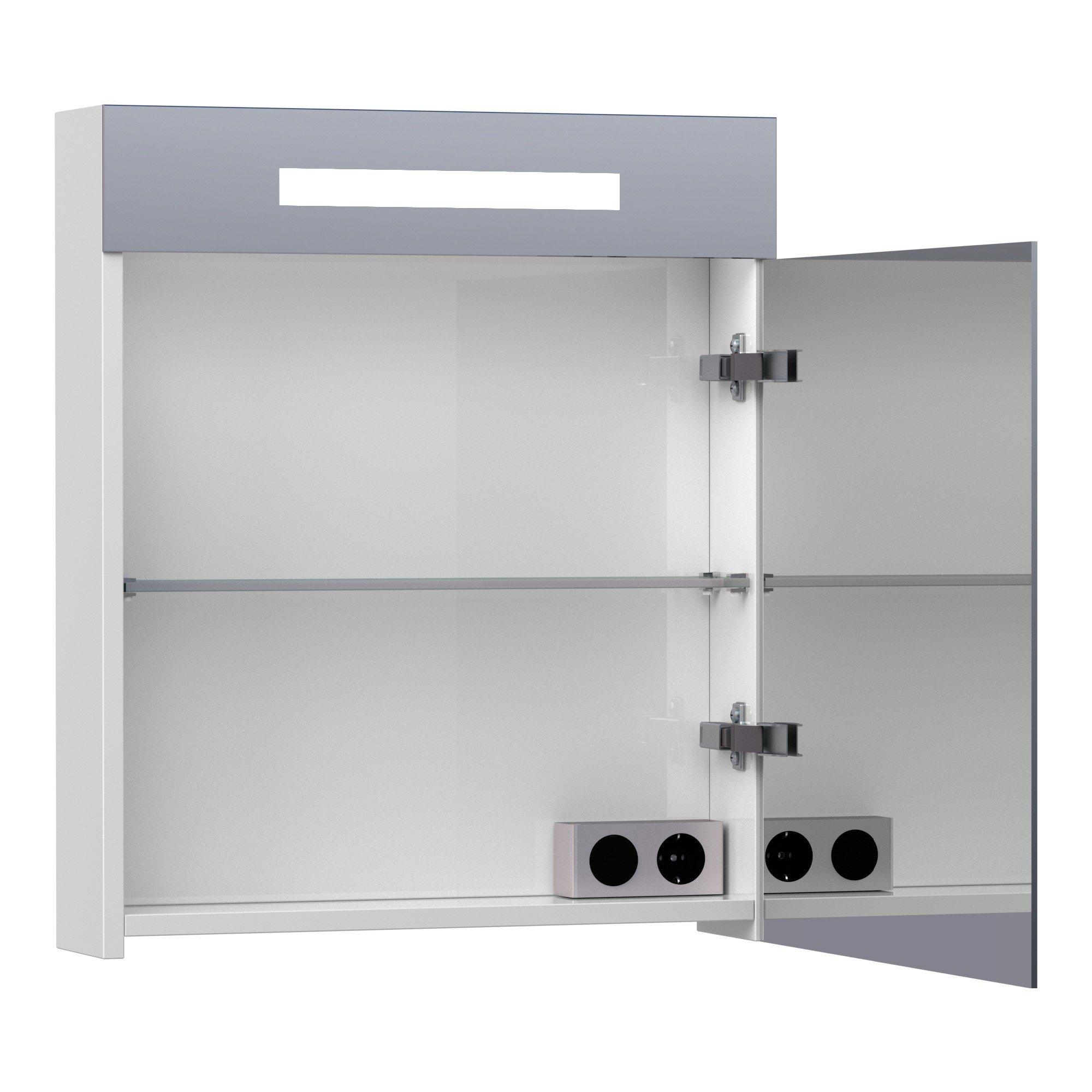 BRAUER Promise Deluxe spiegelkast - 60x70x15cm - met directe verlichting 1 rechtsdraaiende dubbelzijdige spiegeldeur hoogglans wit