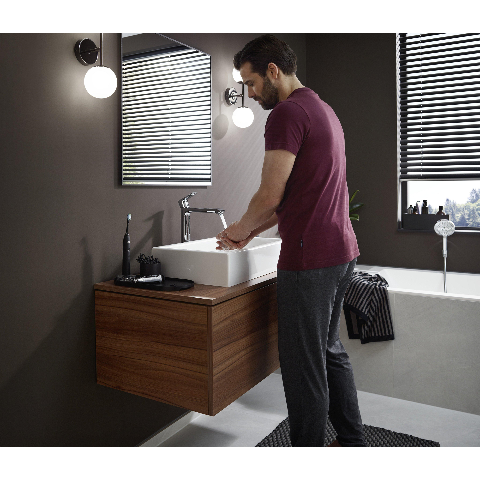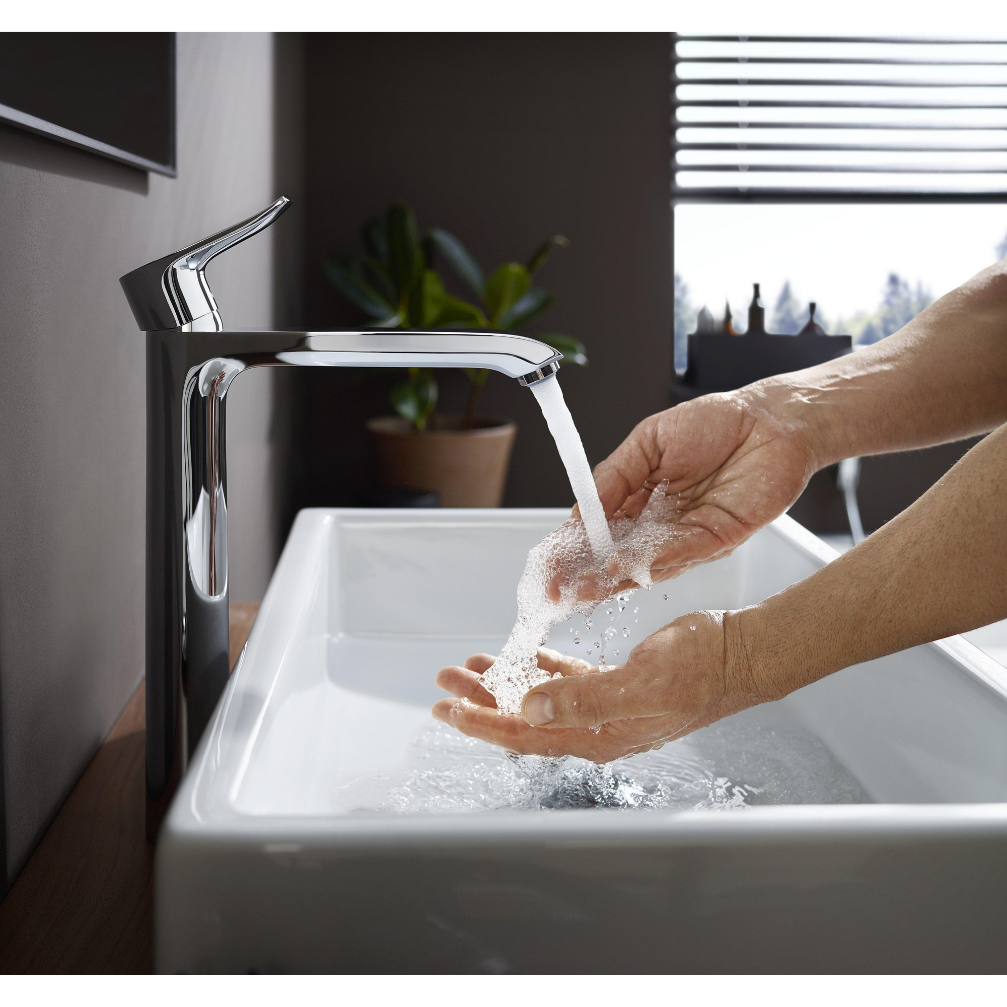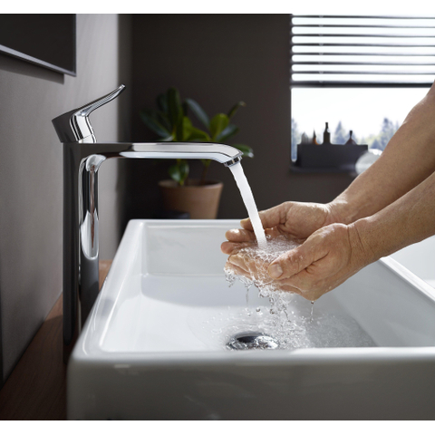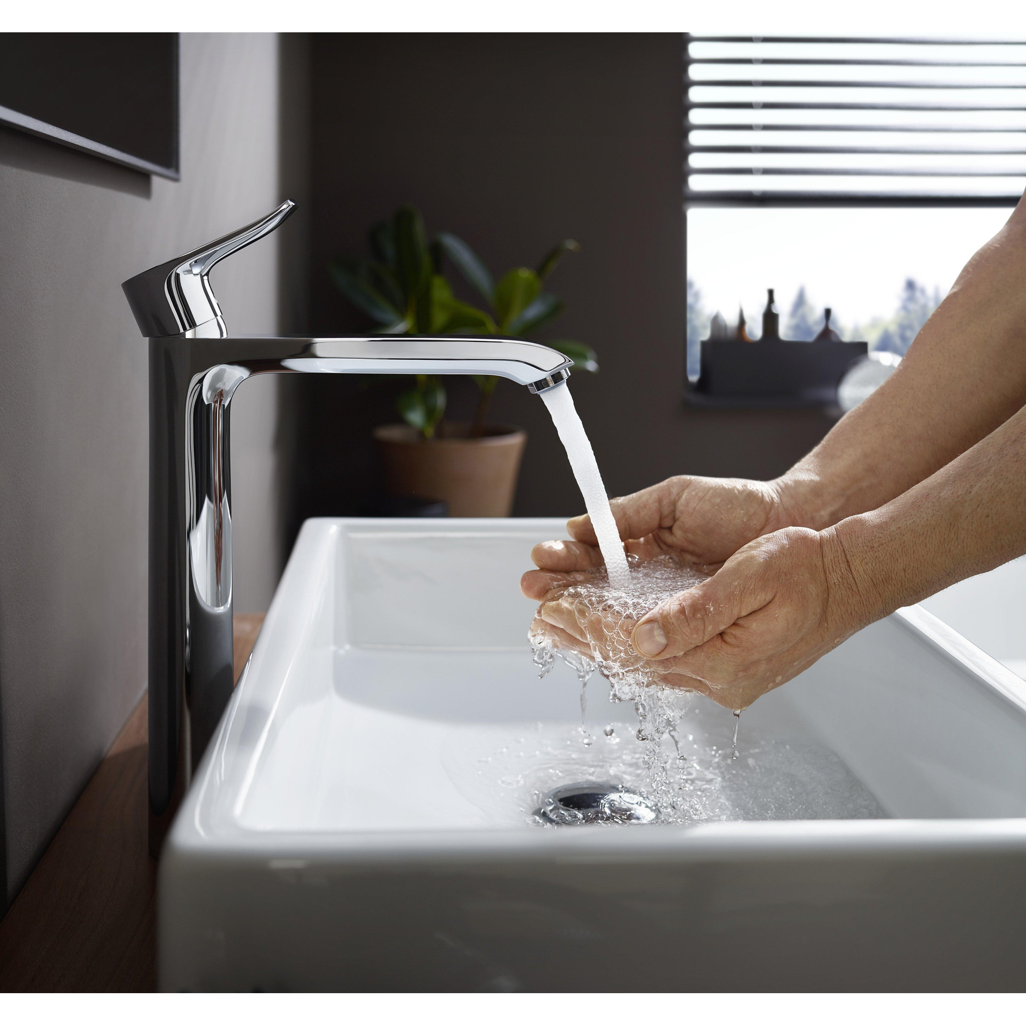 De extra hoge uitloop (ComfortZone 260) geeft je veel bewegingsvrijheid bij de wastafel, ideaal voor het wassen van je haar of het vullen van grote kommen. De geïntegreerde trekstang-afvoergarnituur maakt het openen en sluiten van de afvoer eenvoudig en snel. Bovendien zorgt de instelbare temperatuurbegrenzing voor extra veiligheid, wat vooral prettig is als er kinderen of ouderen in huis zijn. Het QuickClean-systeem maakt het verwijderen van kalkresten moeiteloos, zodat je kraan er altijd als nieuw uitziet.