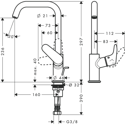 - Hoge draaibare uitloop met een bereik van 120 graden voor optimale bewegingsvrijheid