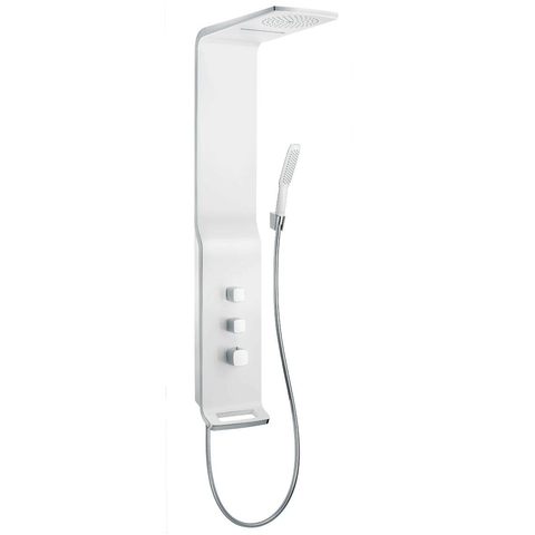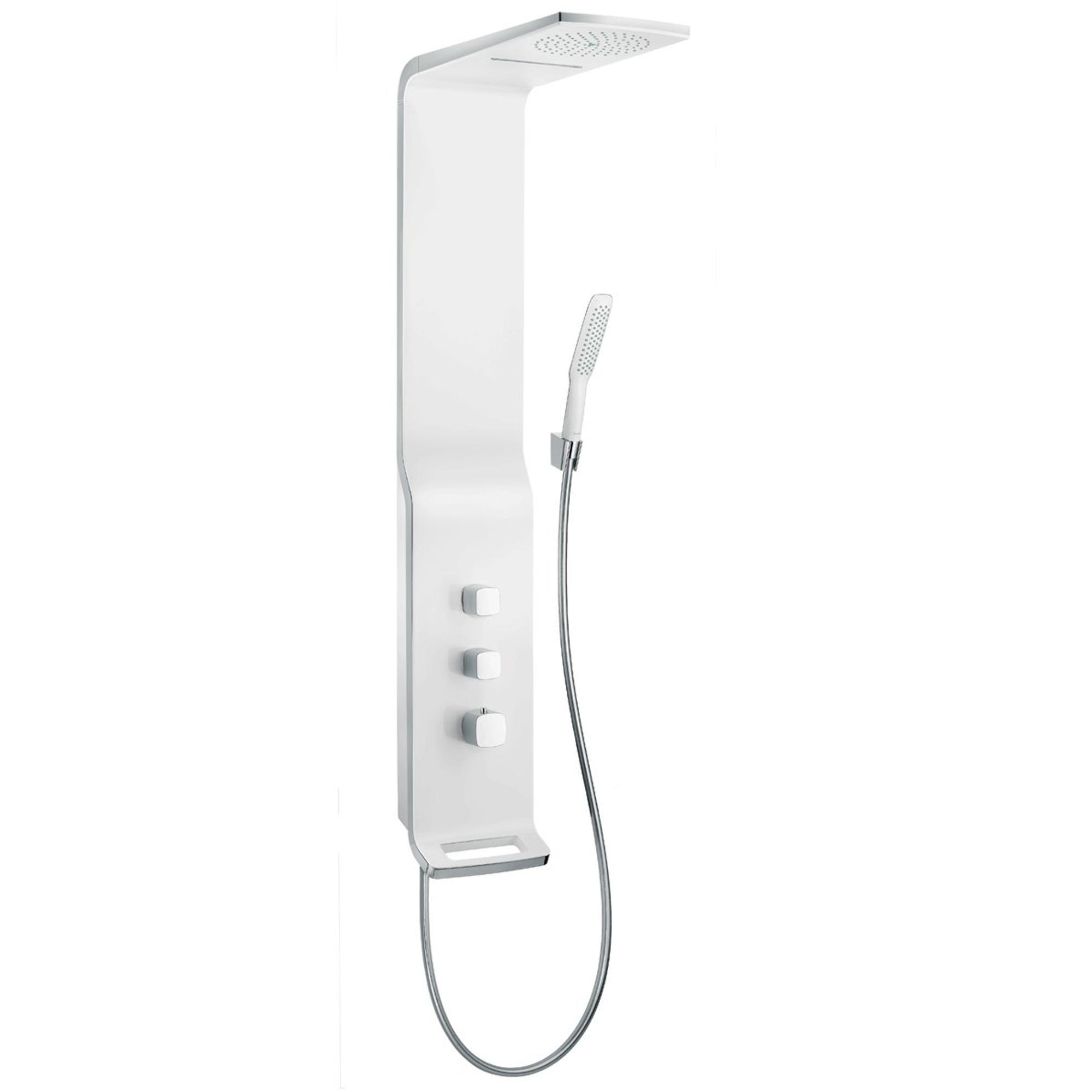 Dit douchepaneel is een toonbeeld van elegantie en moderne vormgeving. De combinatie van wit en chroom geeft het een frisse en tijdloze uitstraling die in vrijwel elke badkamer tot zijn recht komt. Het minimalistische design zorgt ervoor dat het paneel niet alleen functioneel is, maar ook een echte blikvanger. Door de subtiele afwerking en hoogwaardige materialen straalt het een luxe uit die je badkamer direct een upgrade geeft. Zo geniet je niet alleen van een fijne douche, maar ook van een stijlvolle toevoeging die jouw badkamer compleet maakt.