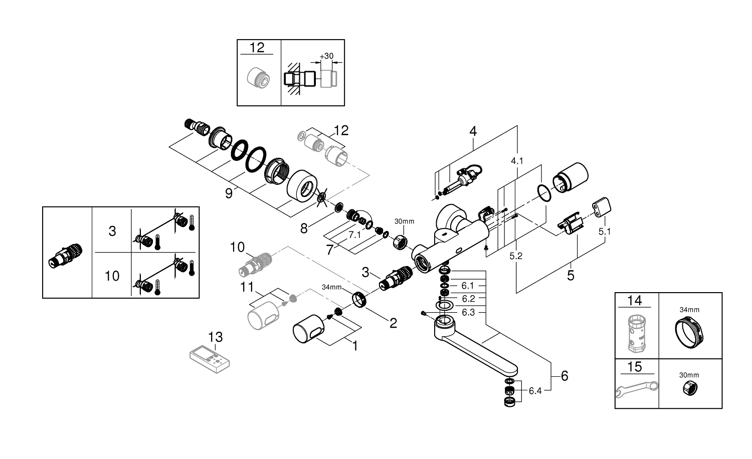 GROHE Eurosmart Cosmopolitan E wandkraan thermostatisch met uitloop 28cm met LongLife batterij 6V chroom