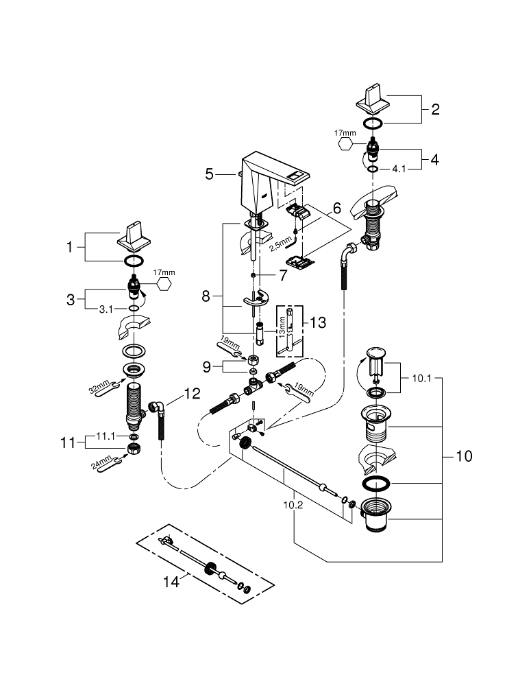 - Handige trekwaste 1 1/4" voor eenvoudig openen en sluiten van de afvoer