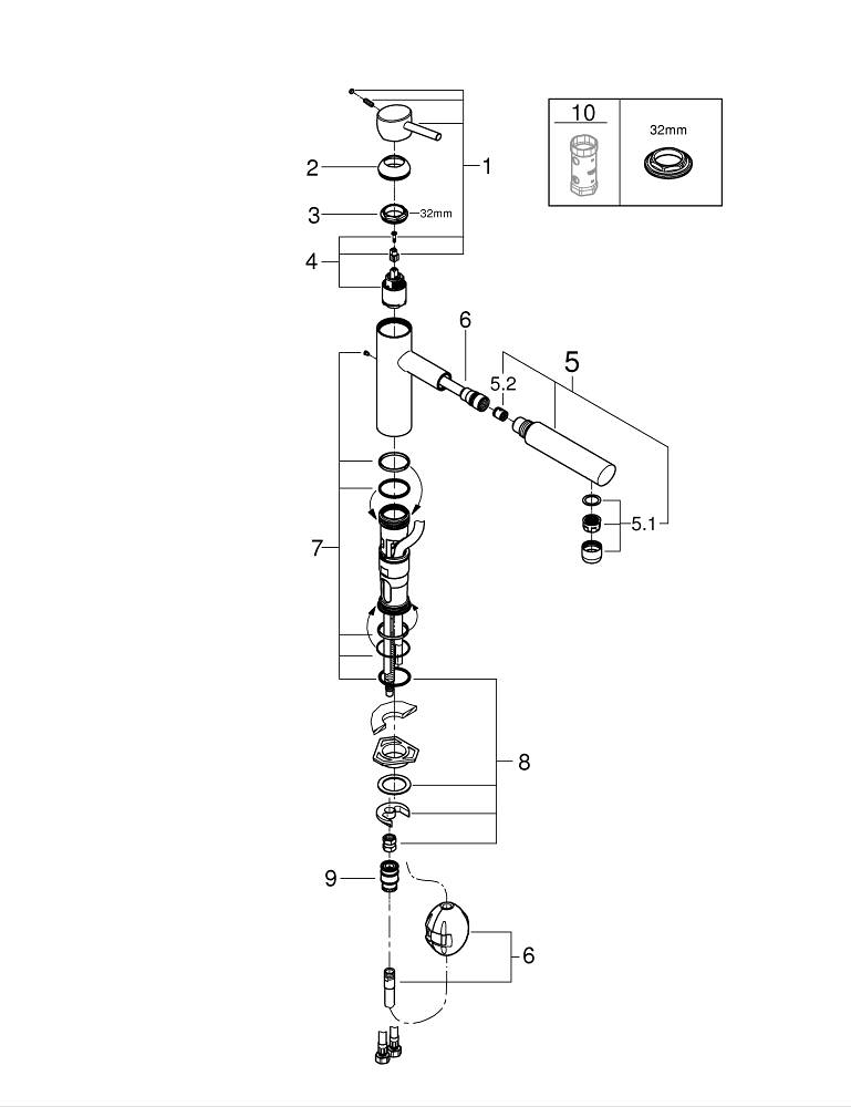 - GROHE SilkMove 35 mm keramische schijven voor soepele en nauwkeurige bediening