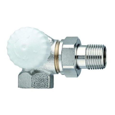 Heimeier V exact radiatorafsluiter dubbel haaks links 3/8 vernikkeld