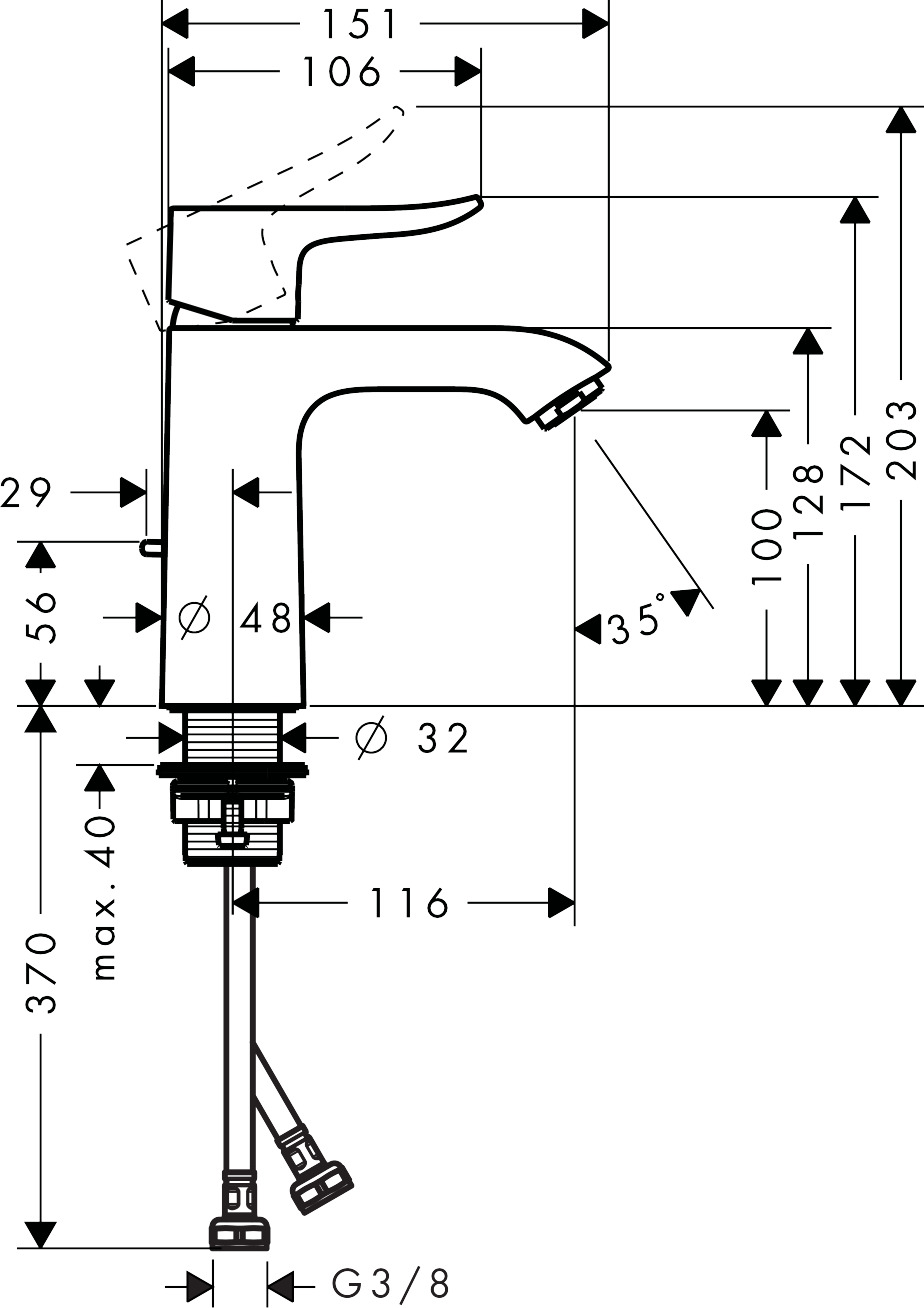 - Inclusief pop-up afvoergarnituur met trekstang voor eenvoudig gebruik