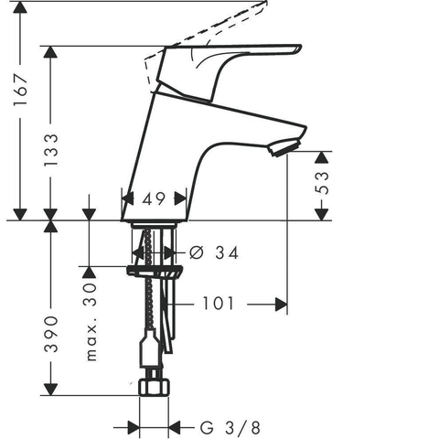 Hansgrohe Focus wastafelmengkraan met waste pushopen afvoergarnituur chroom
