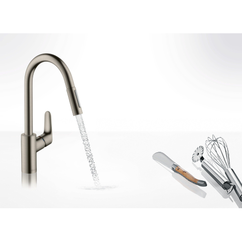 Hansgrohe Focus keukenkraan met uittrekbare vuistdouche RVS look