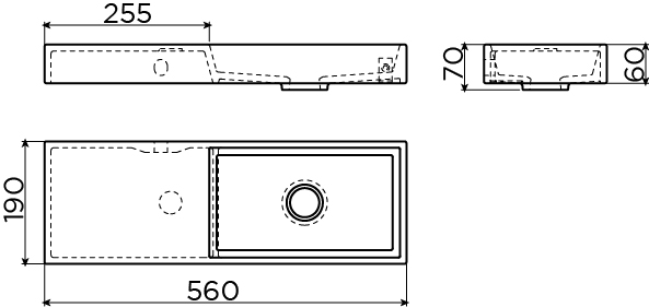 Met een diepte van slechts 19 cm is deze fontein een uitkomst voor smalle toiletruimtes of een compacte nis. Door de kraanbank slim aan de zijkant te plaatsen, kan het bassin dicht tegen de wand worden gemonteerd en houd je toch voldoende wasruimte over. Het rechthoekige formaat van 56x19 cm zorgt voor een elegante, langgerekte lijn langs de muur, wat je ruimte optisch vergroot. De kraangatpositie links is ideaal als de wand rechts naast de fontein wat krapper is of als de looproute daar zit. Zo voorkom je stoten tegen de kraan en creëer je een prettige, logische indeling die ook bij dagelijks gebruik gewoon fijn aanvoelt.