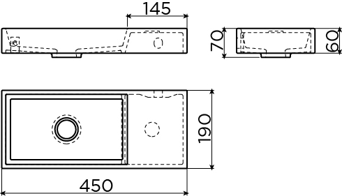 - Zijwaarts (rechts) geplaatst kraangat voor een ruim en functioneel bassin ondanks de geringe diepte
