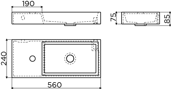 Met een breedte van 56 cm en een diepte van slechts 24 cm benut je de muur optimaal, zonder dat de fontein ver uitsteekt in de ruimte. Dat maakt hem ideaal voor smalle gangen, compacte toiletten of badkamers waar loopruimte belangrijk is. De rechthoekige vorm met strakke lijnen oogt rustig en luxe, waardoor de ruimte optisch groter lijkt. Het kraangat links zorgt ervoor dat je kraan mooi in balans staat met de kom, zeker wanneer je kiest voor een minimalistische fonteinkraan. Door de lage hoogte oogt het geheel extra rank en verfijnd, zonder aan gebruiksgemak in te leveren.