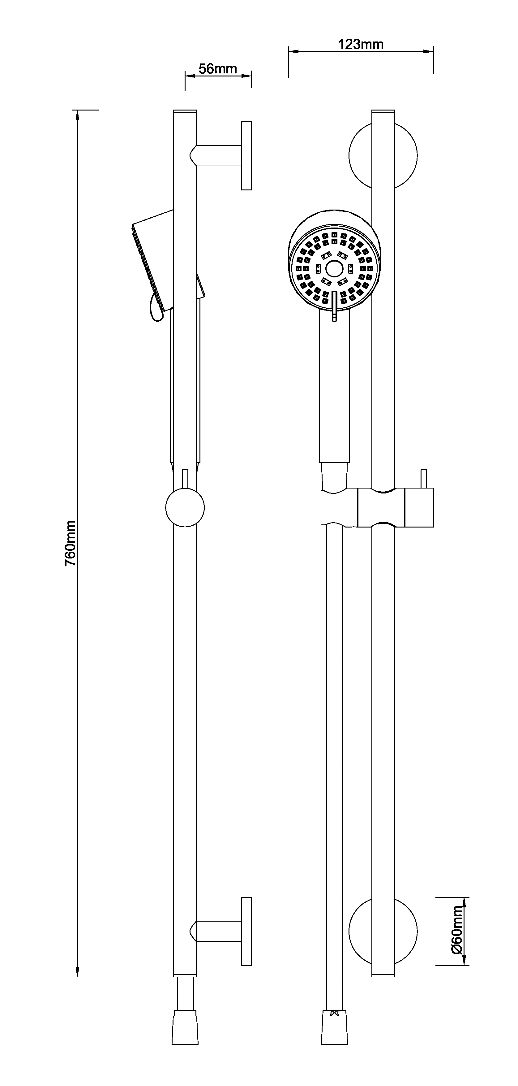 - Totale lengte glijstang: 75 cm – geschikt voor diverse doucheruimtes