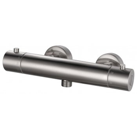 Deze thermostatische douchemengkraan van Wiesbaden is gemaakt van messing en heeft een volledige finish van geborsteld staal. De temperatuur kunt u eenvoudig op de kraan instellen en aflezen. De thermostatische douchemengkranen uit de Rio serie hebben een temperatuurblokkering bij 38°C. Om de temperatuur van het water verder te verhogen moet u de knop van de temperatuurblokkering indrukken. De hartafstand (de maat die gemeten wordt vanuit het midden van de aansluiting) is 12 cm.