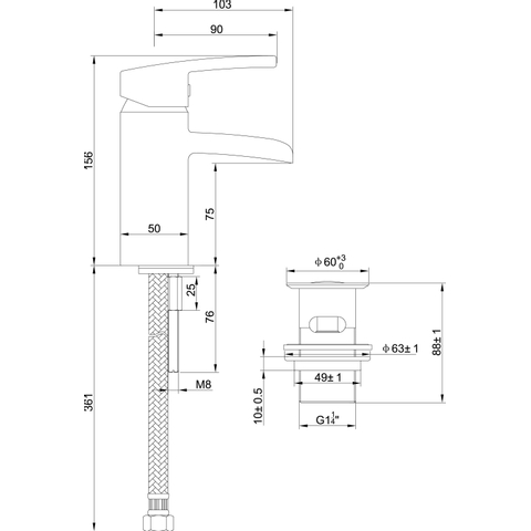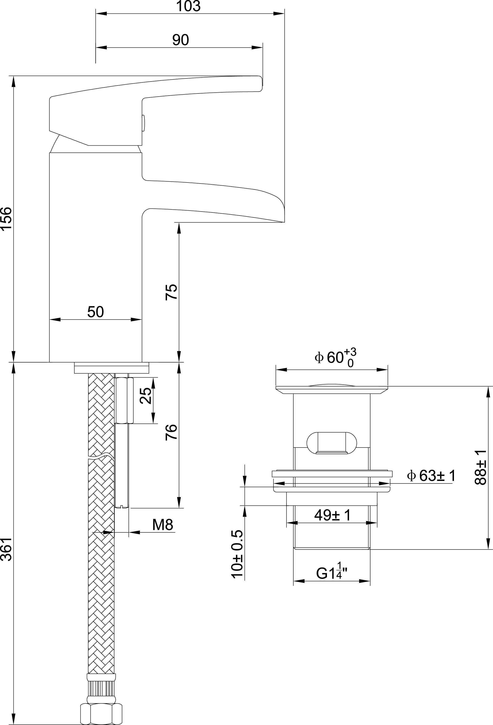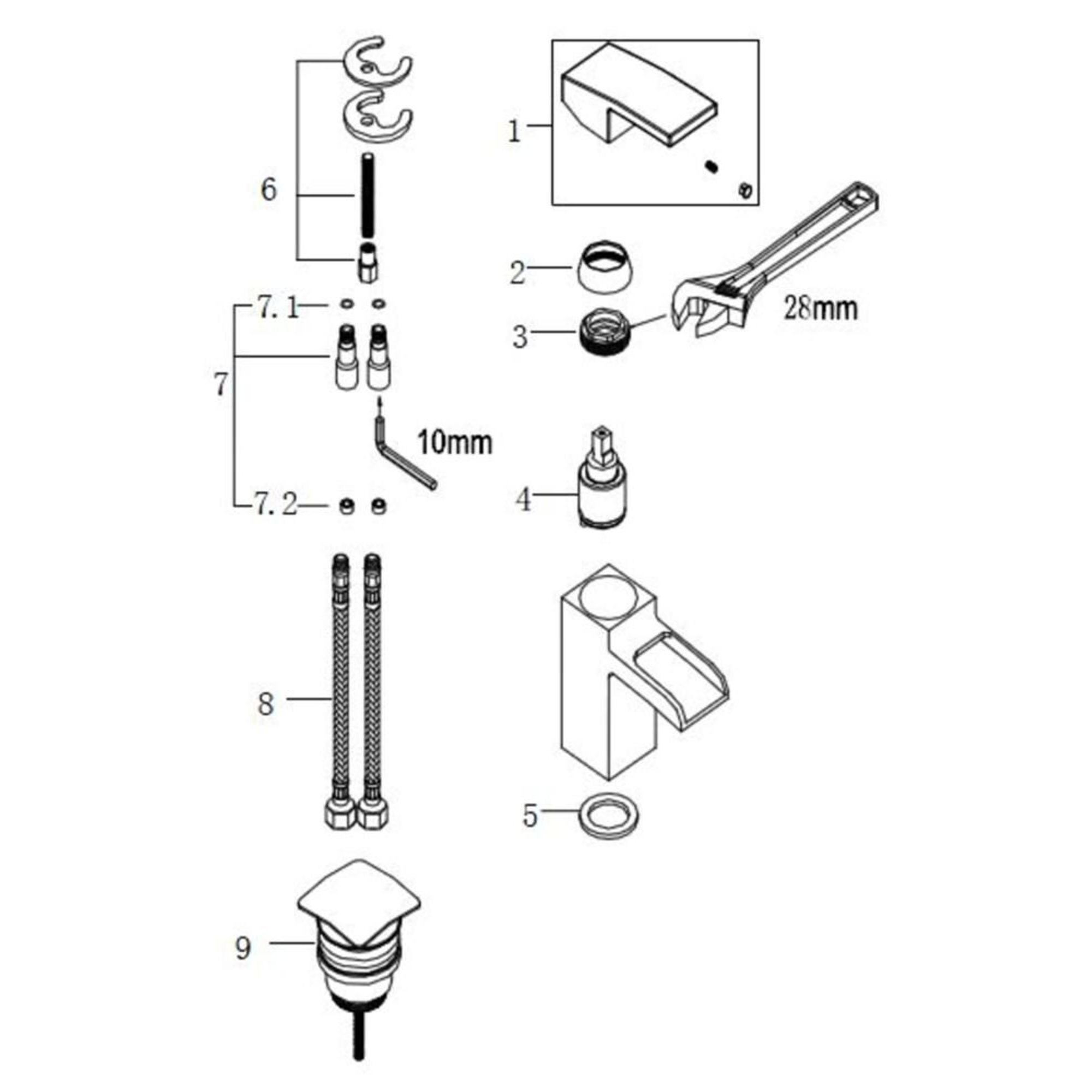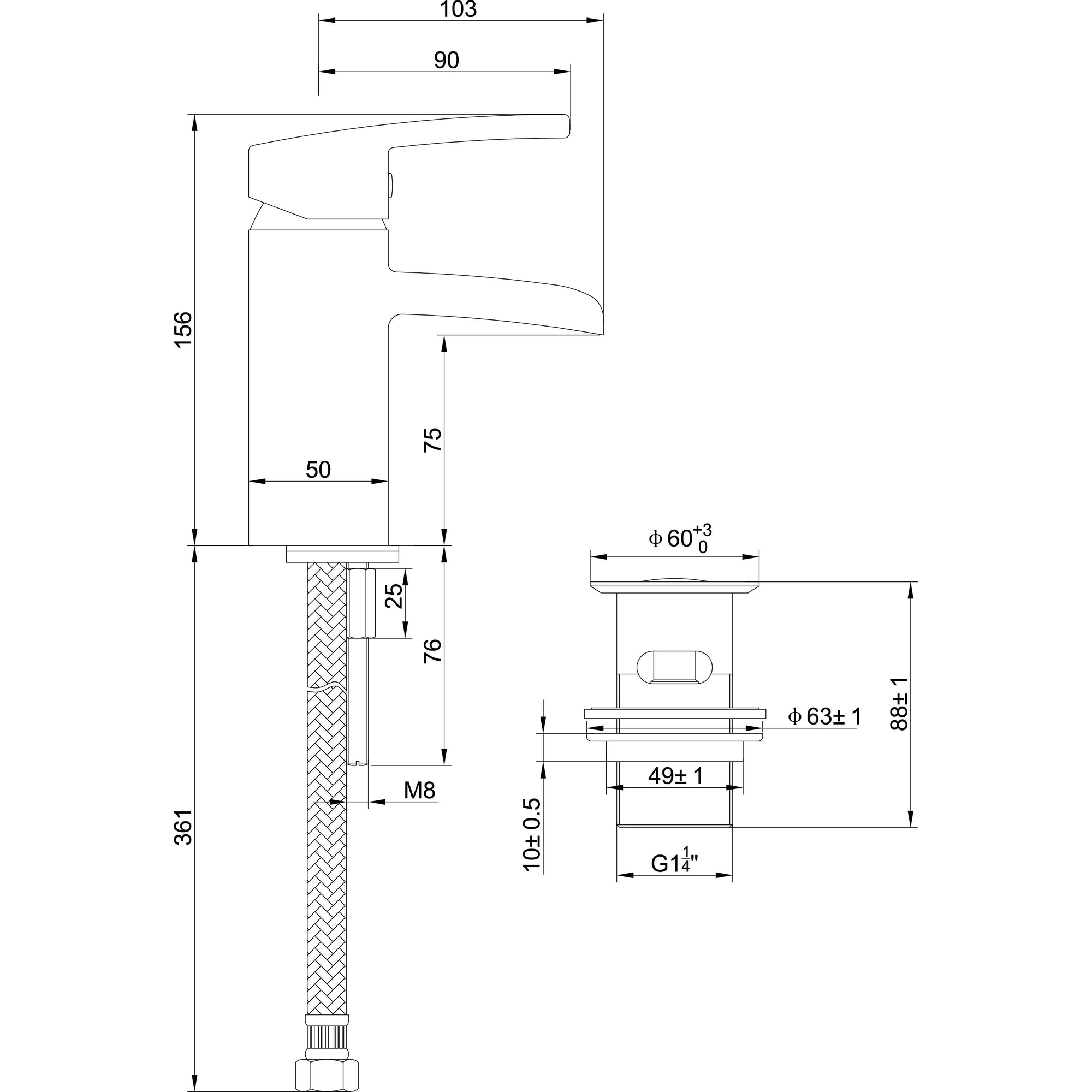 Xellanz Rombo wastafelkraan waterval met clickwaste chroom