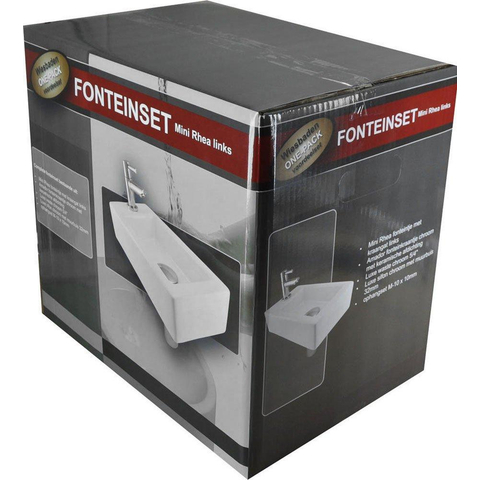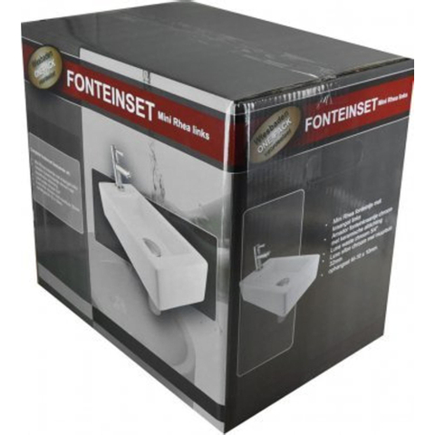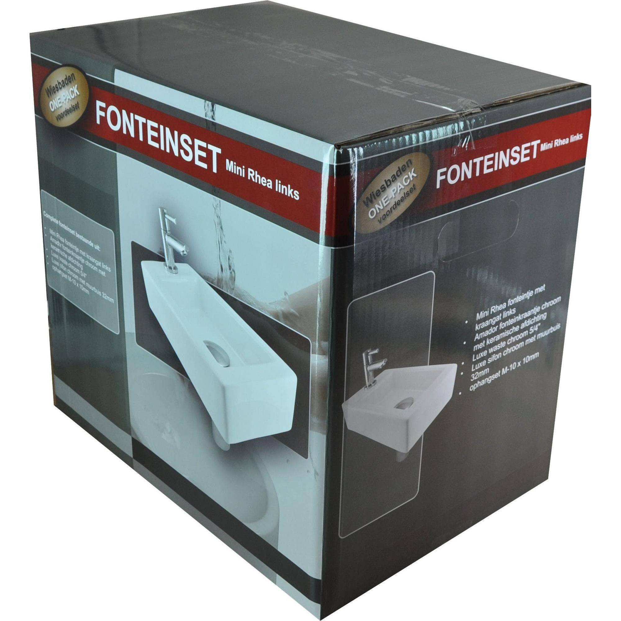 Wiesbaden Fonteinset Rhea S mini met fontein links glans wit, kraan, sifon en afvoerplug chroom