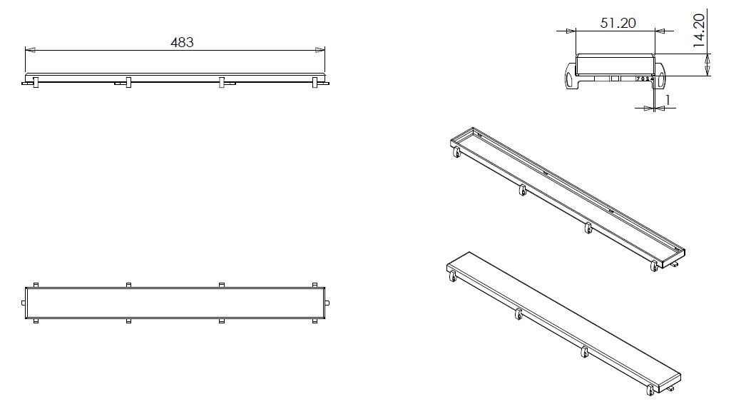 Wiesbaden Tegelrooster voor douchegoot 50 x 7 cm RVS