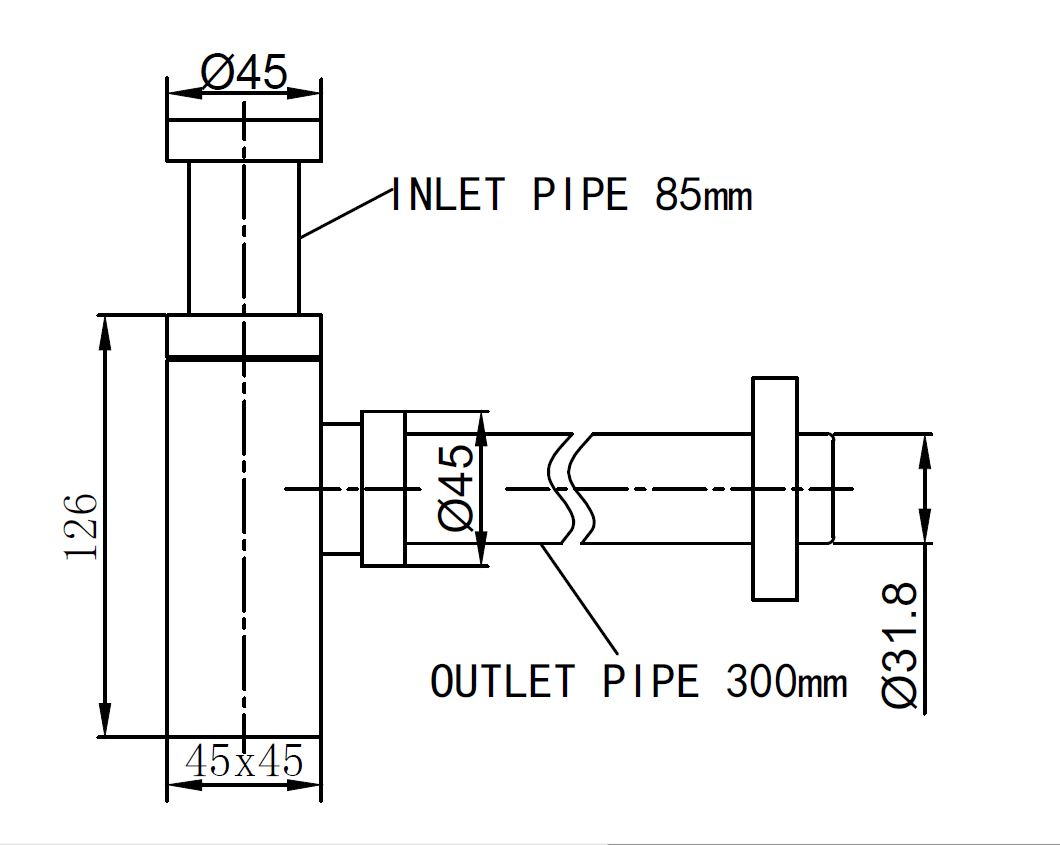 Xellanz Rombo sifon vierkant 5/4" x 32 mm geborsteld staal