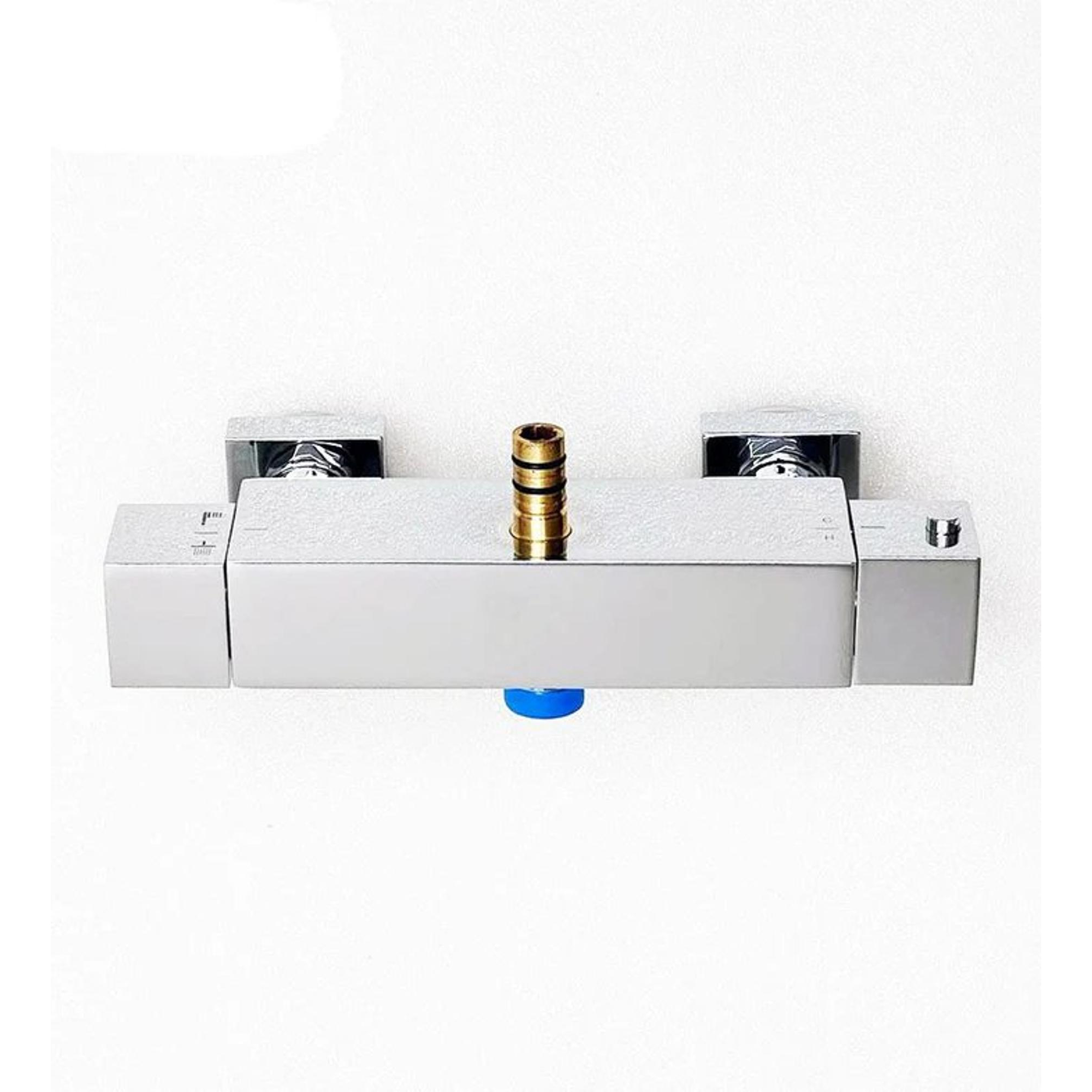 Zoek je een strakke, betrouwbare douchethermostaat die jarenlang probleemloos zijn werk doet en tegelijk een tijdloze uitstraling heeft? Dan is deze opbouwthermostaat een slimme keuze. Dankzij het rechte, minimalistische design past hij perfect in moderne badkamers, maar ook in een tijdloze of industrieel geïnspireerde stijl komt hij uitstekend tot zijn recht. De bediening is overzichtelijk en voelt direct vertrouwd, waardoor zowel jij als je gezin veilig en comfortabel kunnen douchen, zonder gedoe met wisselende watertemperaturen. Deze kraan is vooral geschikt als je een bestaande douche wilt upgraden met een thermostaat, of wanneer je bij een renovatie kiest voor opbouwinstallatie in plaats van inbouw. De chroomafwerking zorgt daarnaast voor een frisse, glanzende look die mooi combineert met andere chromen douchekranen en accessoires, zodat je badkamer één rustig geheel vormt.