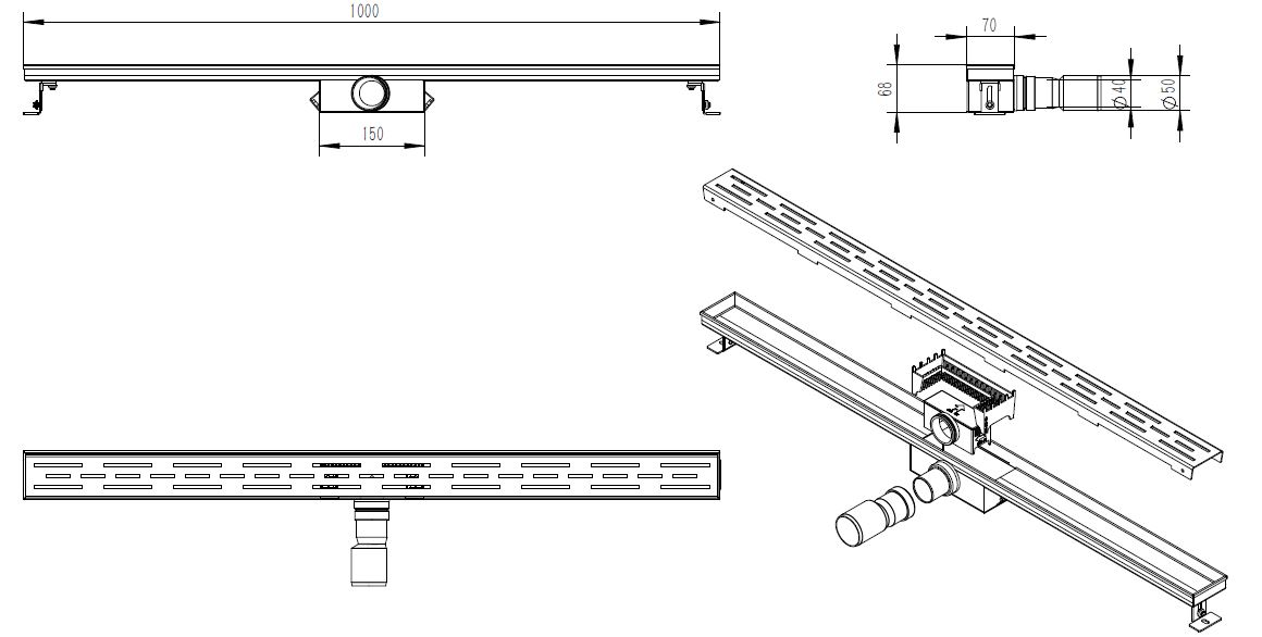 Naast zijn esthetische waarde biedt de Saniclass Douchegoot ook uitstekende functionaliteit. Met een zijuitloop voor een efficiënte waterafvoer en een ondiep ontwerp dat gemakkelijk in de vloer kan worden geïntegreerd, zorgt deze douchegoot voor een soepele en probleemloze douche-ervaring. Het duurzame roestvrijstalen materiaal garandeert een lange levensduur en optimale prestaties.
