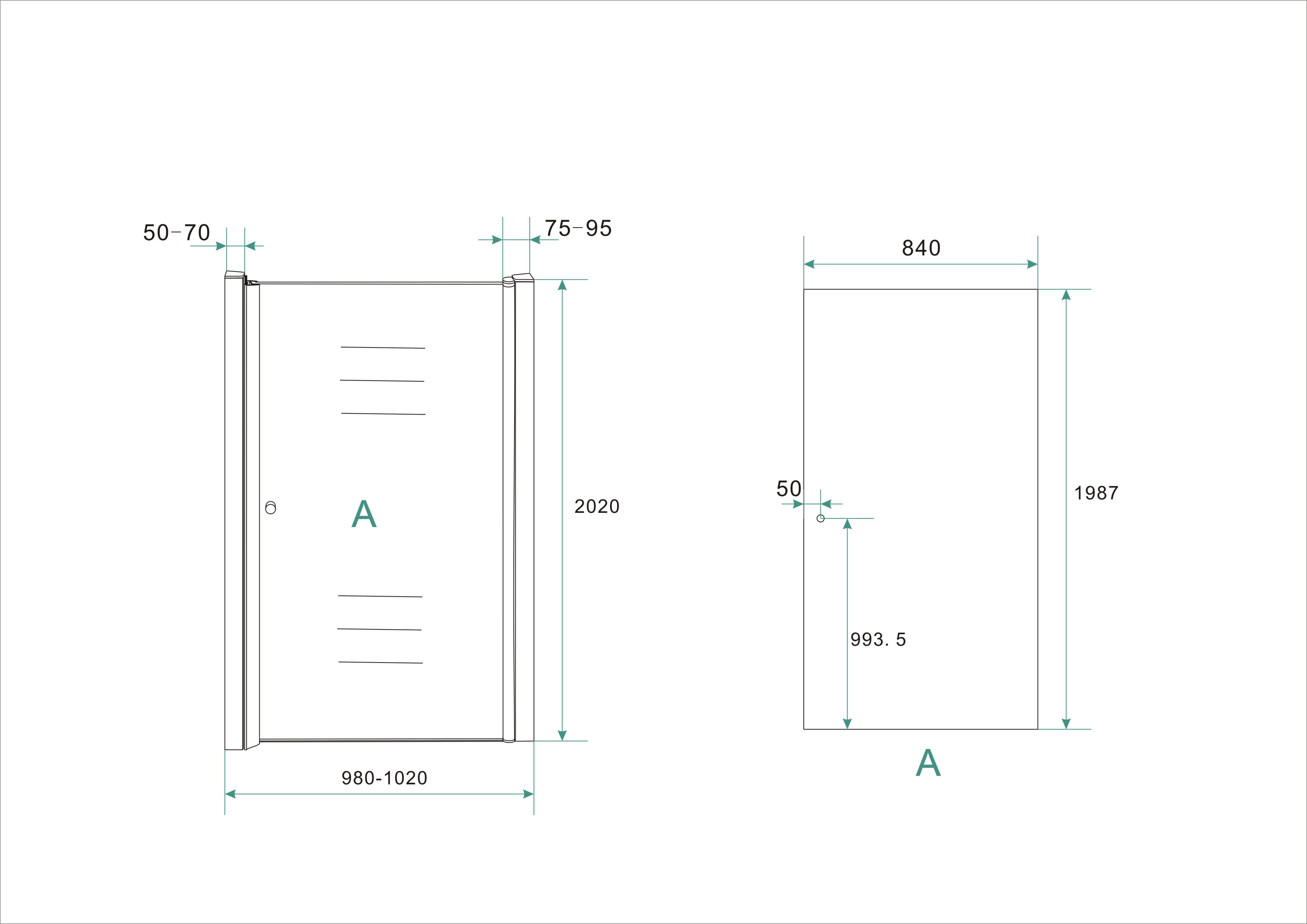 LET OP: Zodra je deze nisdeur combineert met een zijwand komt het aanslagprofiel van 50 tot 70 mm te vervallen.