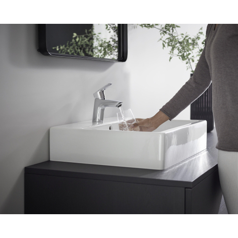 Het design van deze kraan is een perfecte balans tussen eenvoud en elegantie. De chromen finish straalt luxe uit en is bovendien eenvoudig schoon te houden, waardoor je badkamer er altijd verzorgd uitziet. De rechte greep en het zachte SoftCube-design geven de kraan een moderne uitstraling die moeiteloos aansluit bij diverse badkamerinterieurs. Met deze kraan voeg je een subtiel maar opvallend element toe dat de sfeer in je badkamer direct verhoogt.