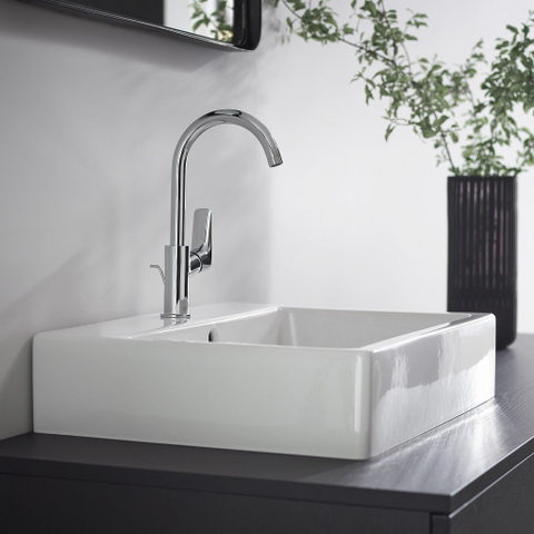 De kraan is ontworpen met een eigentijds SoftCube-design dat zich kenmerkt door heldere lijnen en een afgeronde vormgeving. De glanzende chromen finish straalt luxe uit en zorgt ervoor dat de kraan een echte eyecatcher wordt in jouw badkamer. Door het tijdloze design past deze kraan perfect bij zowel moderne als klassieke wastafels. Bovendien blijft de chroomlaag lang mooi en is eenvoudig schoon te houden, zodat jouw badkamer er altijd verzorgd uitziet. Met deze kraan kies je voor een stijlvolle toevoeging die jouw badkamer een hoogwaardige uitstraling geeft.