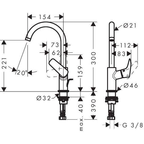 - Draaibare uitloop van 120 graden voor veelzijdig gebruik