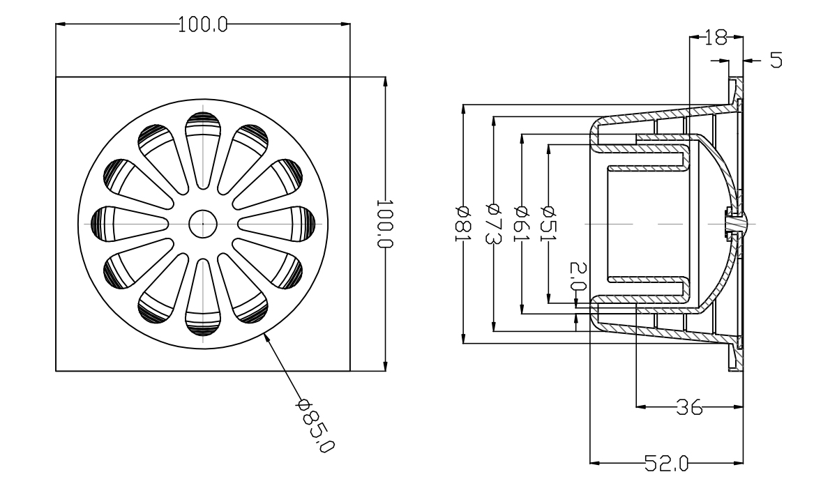 • Compacte doucheput van 10 x 10 cm: ideaal voor kleine en grote douches.
