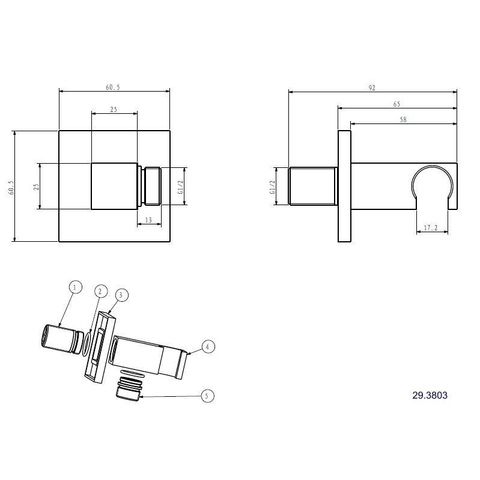 Xellanz Rombo wandaansluitbocht met handdouchehouder vierkant 1/2" chroom