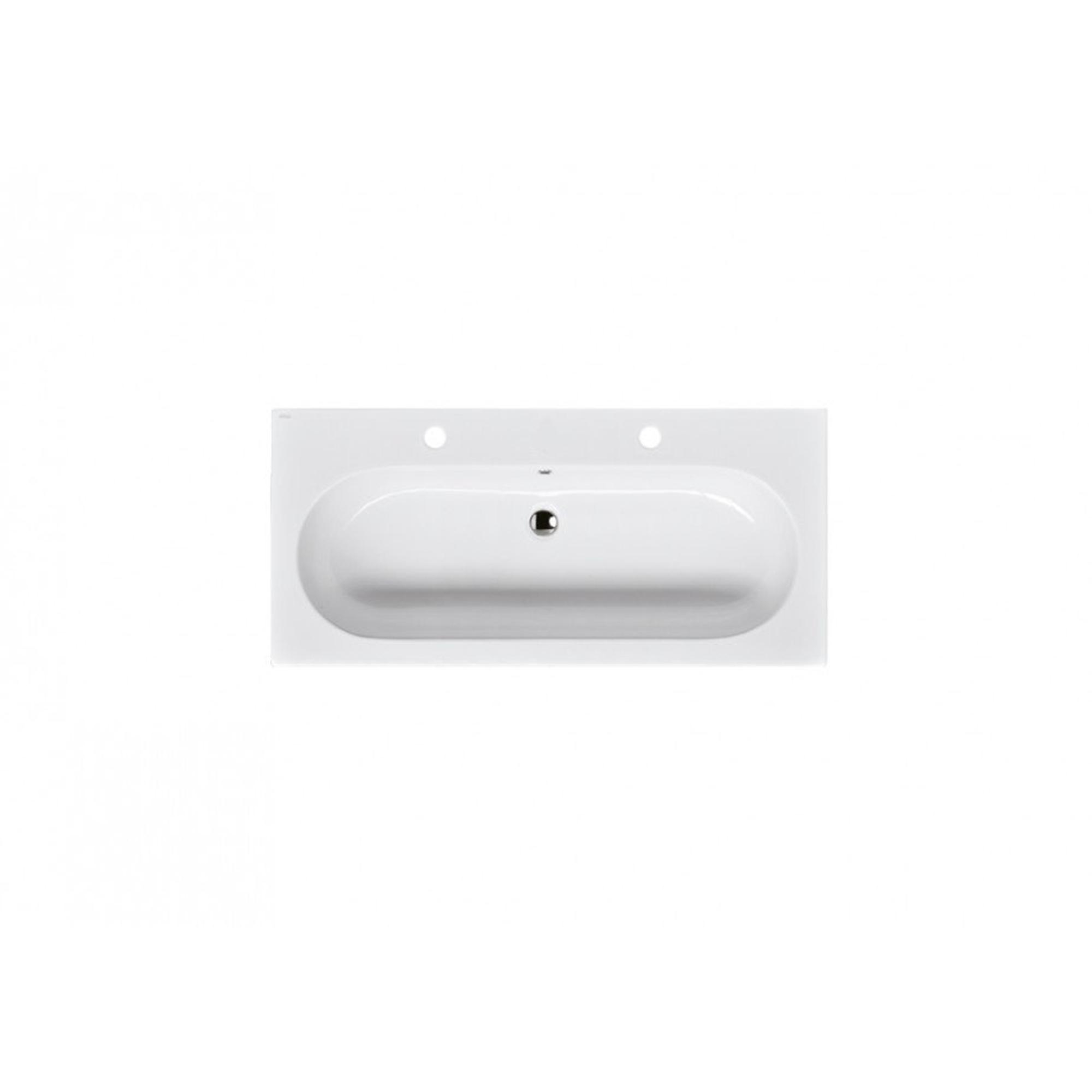 Saniclass Palermo Meubelwastafel - 100x47x3.5cm - overloop - 1 wasbak midden - 2 kraangaten - keramiek - wit