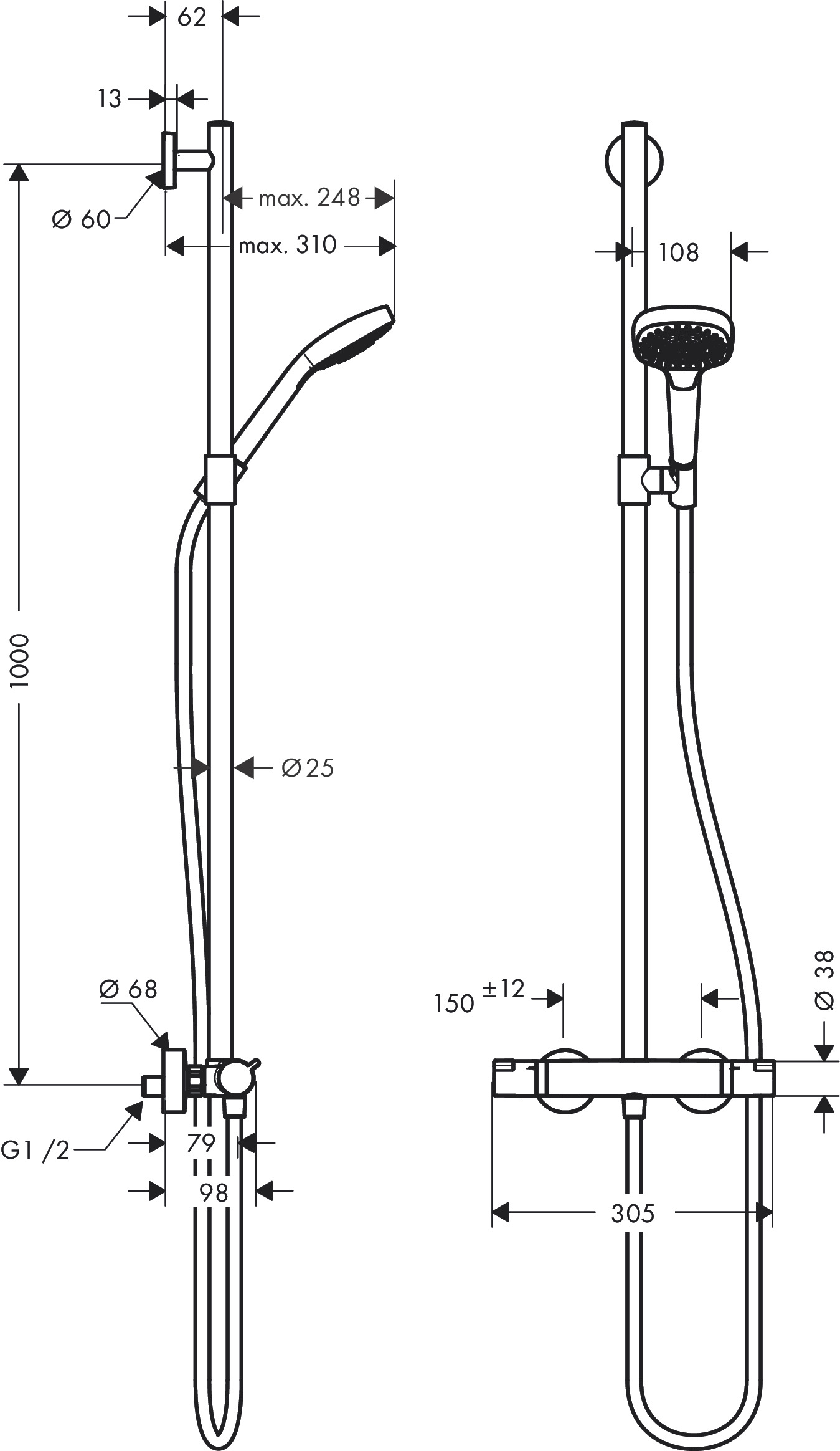 - Thermostatisch douchethermostaat voor constante watertemperatuur en extra veiligheid