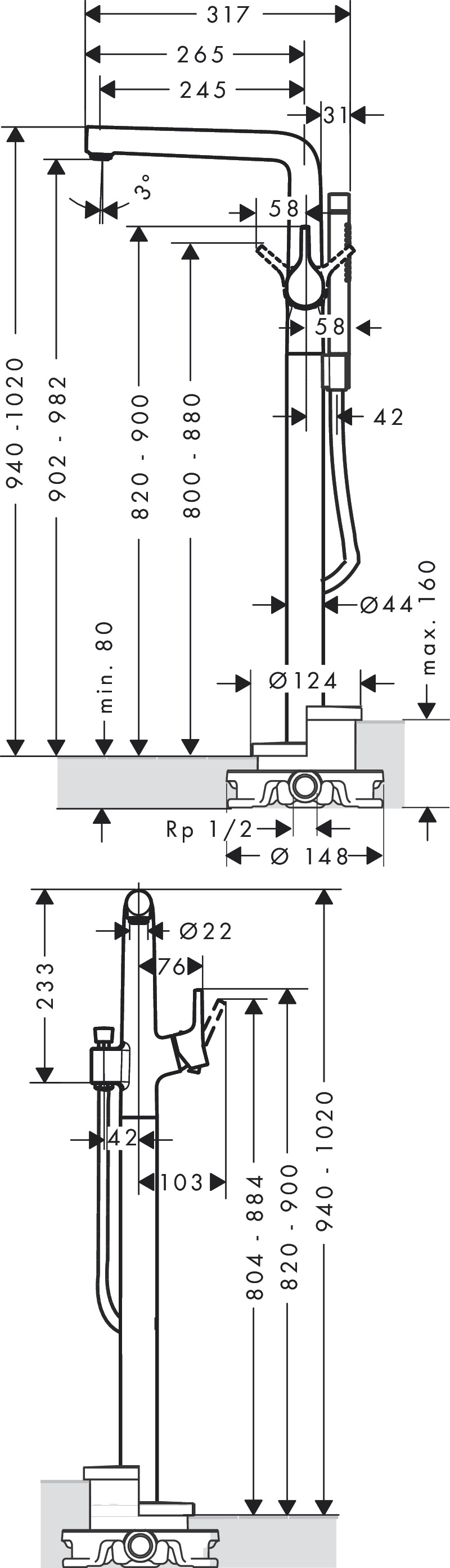 - Vrijstaande montage voor optimale flexibiliteit rondom het bad