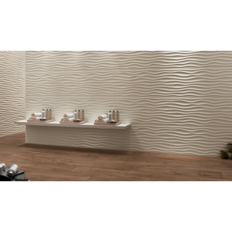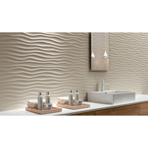 Zoek je een opvallende, maar toch natuurlijke wandafwerking voor je badkamer, toilet of woonruimte, dan is deze decoratieve wandtegel een slimme keuze. De verfijnde 3D-structuur zorgt voor speels licht en schaduw, waardoor een gewone wand direct verandert in een stijlvolle blikvanger. Dankzij het formaat van 40x80 cm komt het reliëf prachtig tot zijn recht, zowel achter het bad of de wastafel als op een volledige accentwand. De matte, zanderige kleur past moeiteloos in een moderne, Scandinavische of hotel-chique badkamer en combineert mooi met zowel lichte houttinten als strakke, donkere elementen. Deze tegel is ideaal als je een luxe sfeer wilt creëren zonder dat het te druk oogt, en is bovendien uitstekend te gebruiken in combinatie met rustige basis wandtegels.