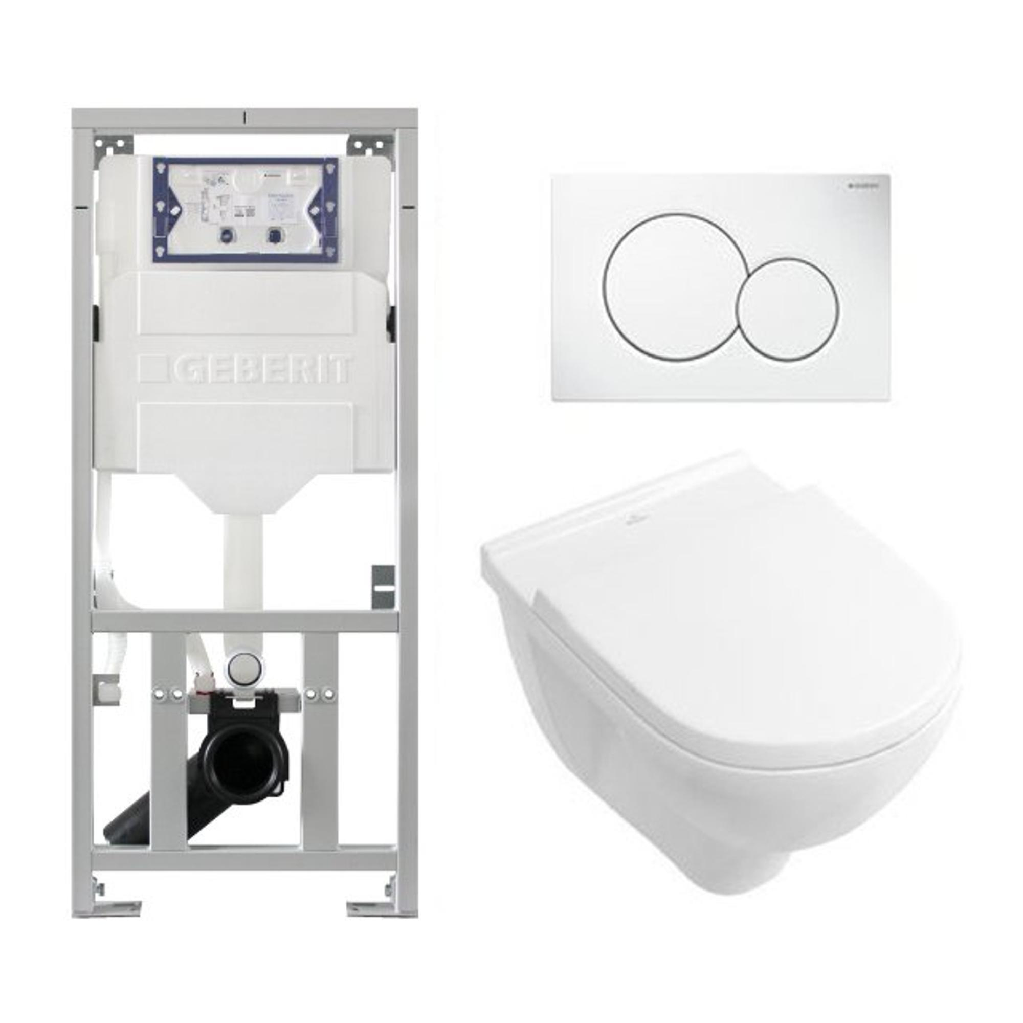 Villeroy & Boch O.novo inbouwset met diepspoel wandcloset wit softclose zitting afdekplaat wit