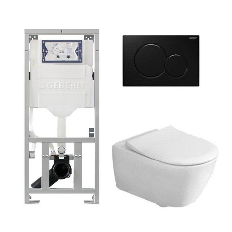 Villeroy & Boch Subway 2.0 inbouwset met diepspoel wandcloset slimseat zitting afdekplaat zwart