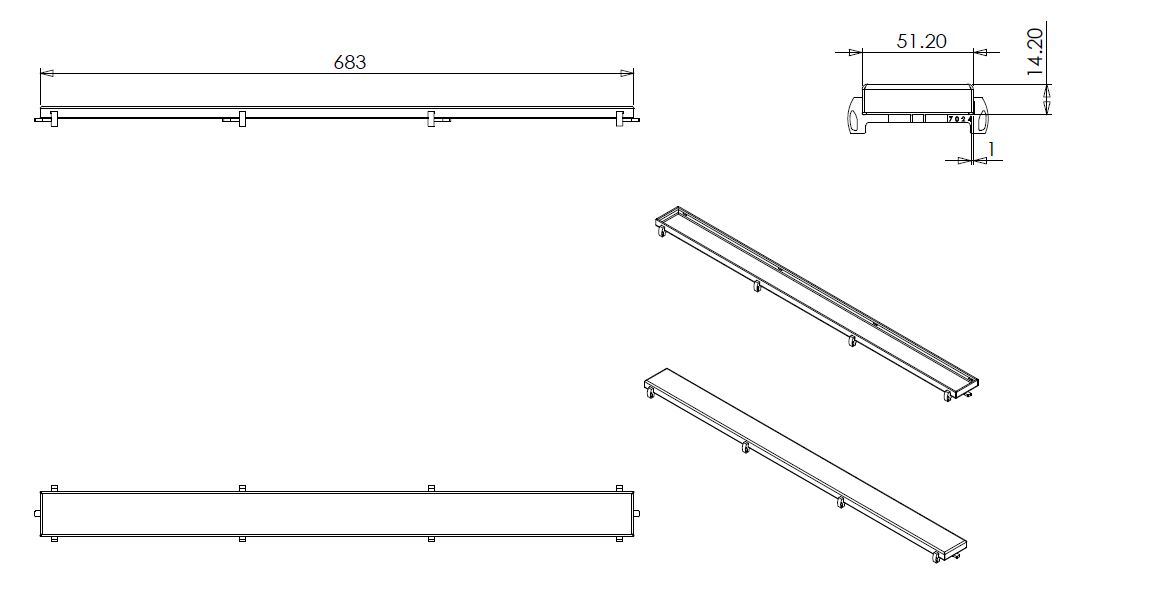 Wiesbaden Tegelrooster voor douchegoot 70 x 7 cm RVS