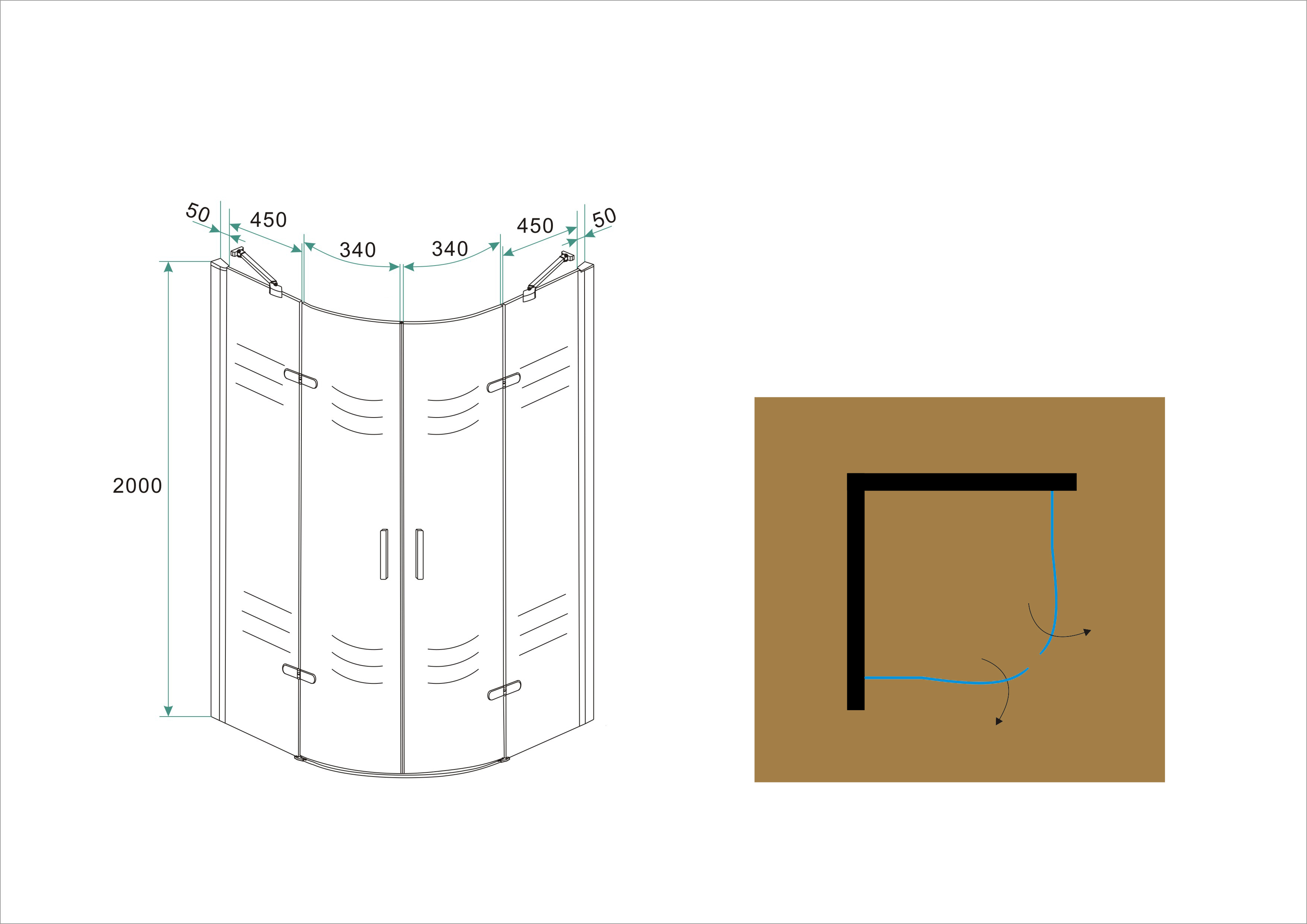 Wiesbaden Double cabine kwartrond met 2 draaideuren 1000 x 1000 x 2000 x 8 mm nano helder glas/chroom