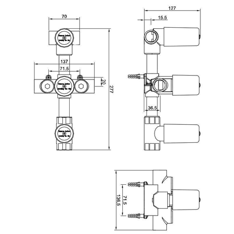 Wiesbaden Caral inbouwdeel inbouwthermostaat 3 weg