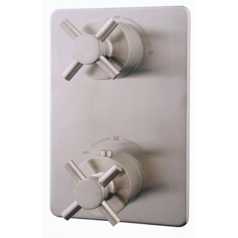 Xellanz Cross afbouwdeel inbouwthermostaat 2 weg geborsteld staal PVD