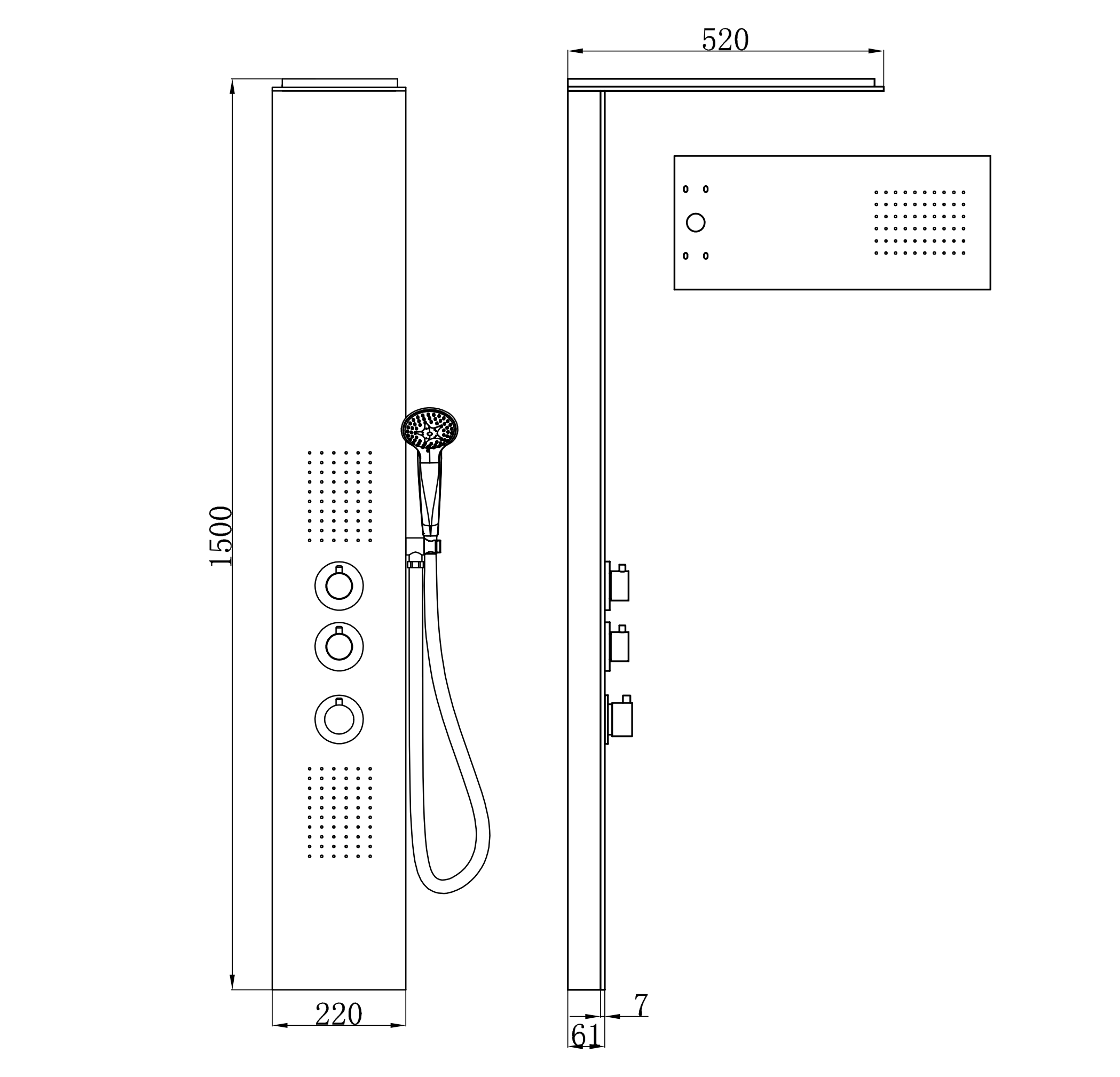 Xellanz Ontario thermostatische douchekolom 150x22 cm RVS