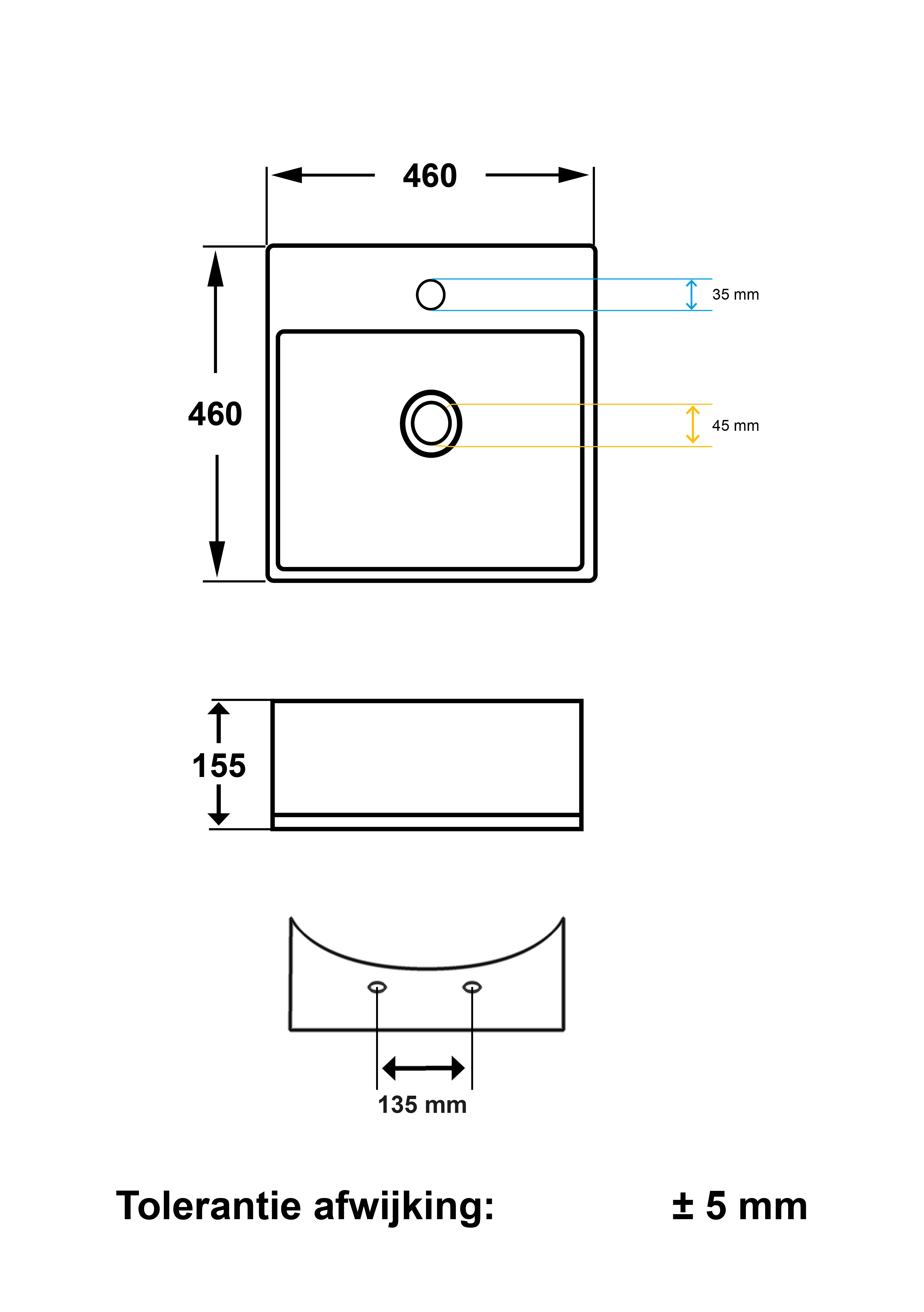 Gemaakt van hoogwaardig keramiek, staat deze waskom garant voor duurzaamheid en een lange levensduur. Keramiek is bestand tegen krassen, hitte en vocht, waardoor je verzekerd bent van een wastafel die er jarenlang als nieuw uitziet. Het glanzende oppervlak is bovendien eenvoudig te reinigen, wat bijdraagt aan een hygiënische badkameromgeving. Zo geniet je niet alleen van een mooi product, maar ook van het gemak in het onderhoud.