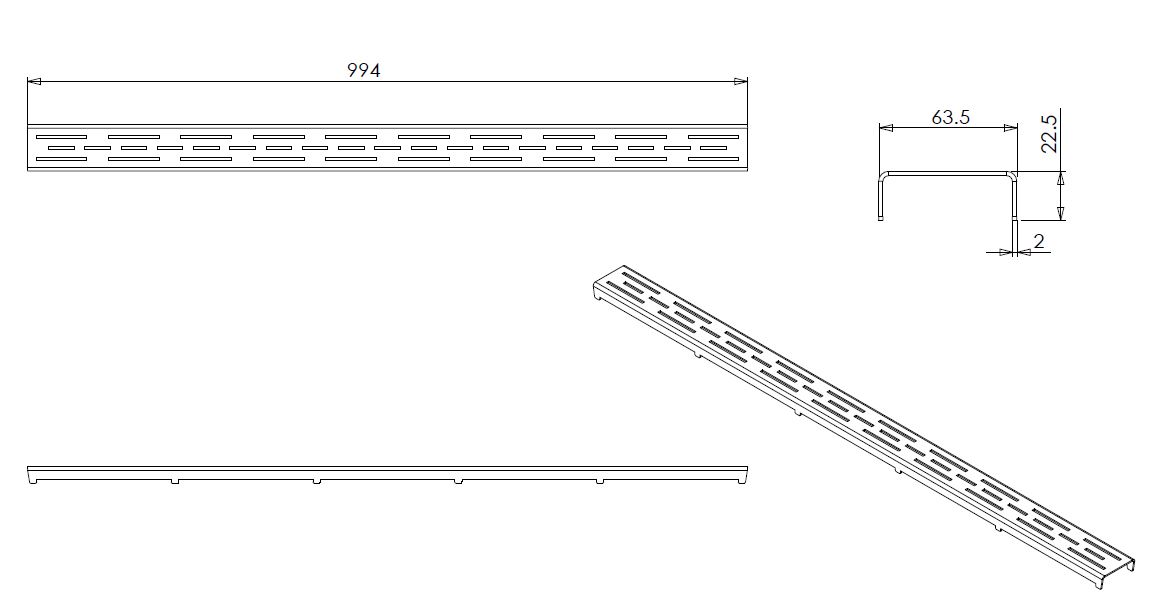 Los standaard rooster tbv 3e gen douchegoot 100cm