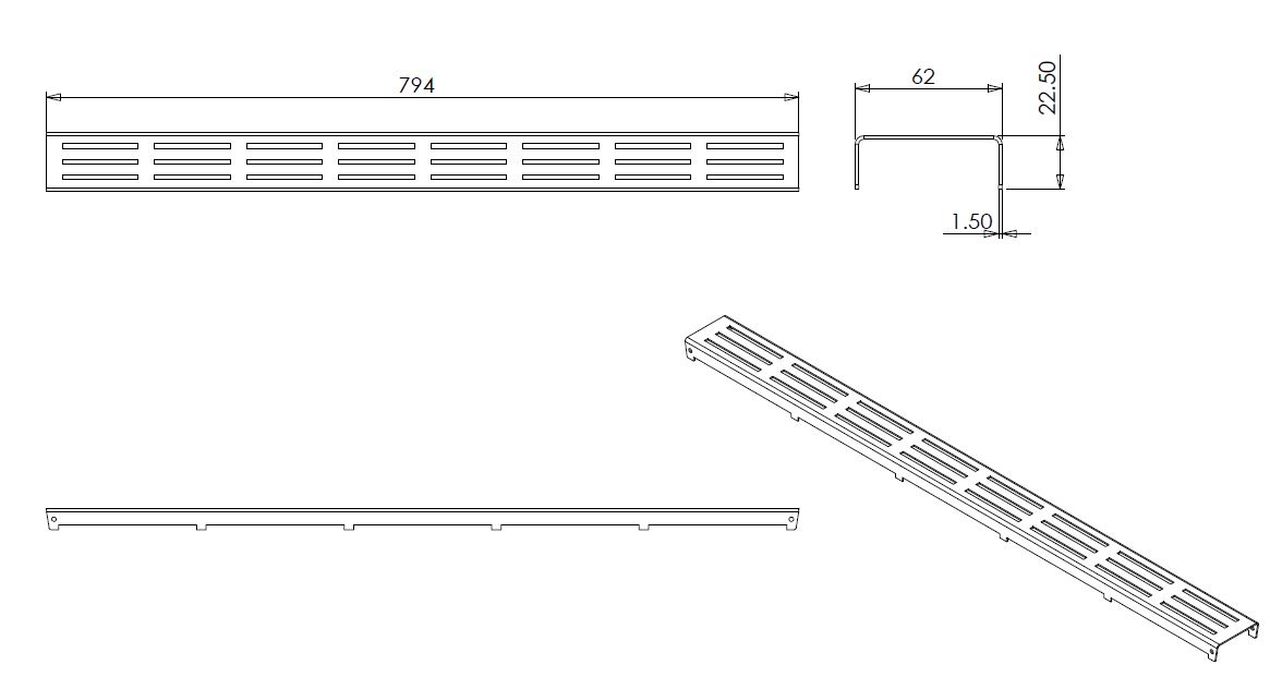 Wiesbaden Rooster type 1 voor douchegoot 80 x 7 cm RVS