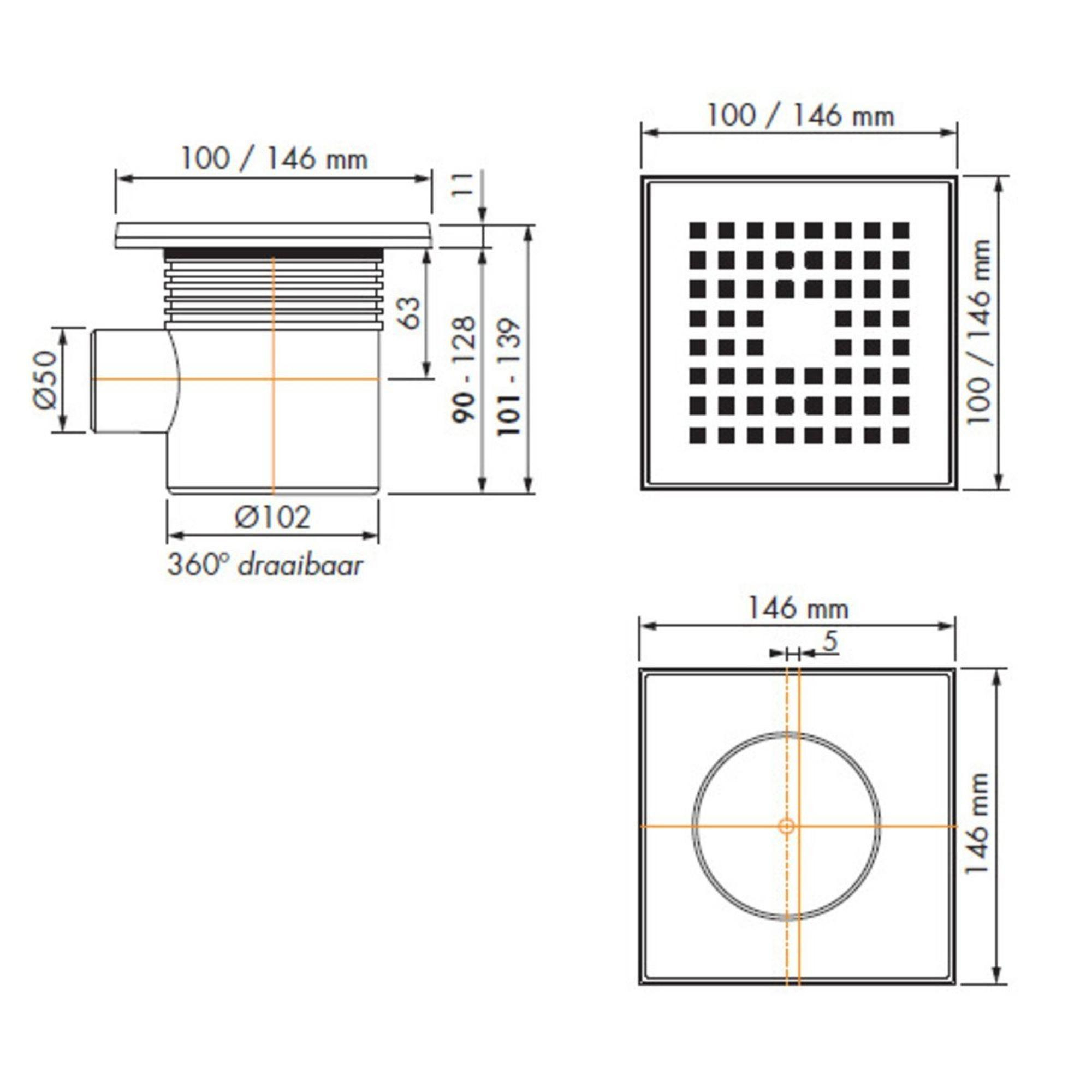 Easy Drain Aqua quattro vloerput abs 15x15cm horizontaal tegel 40mm rvs TWEEDEKANS